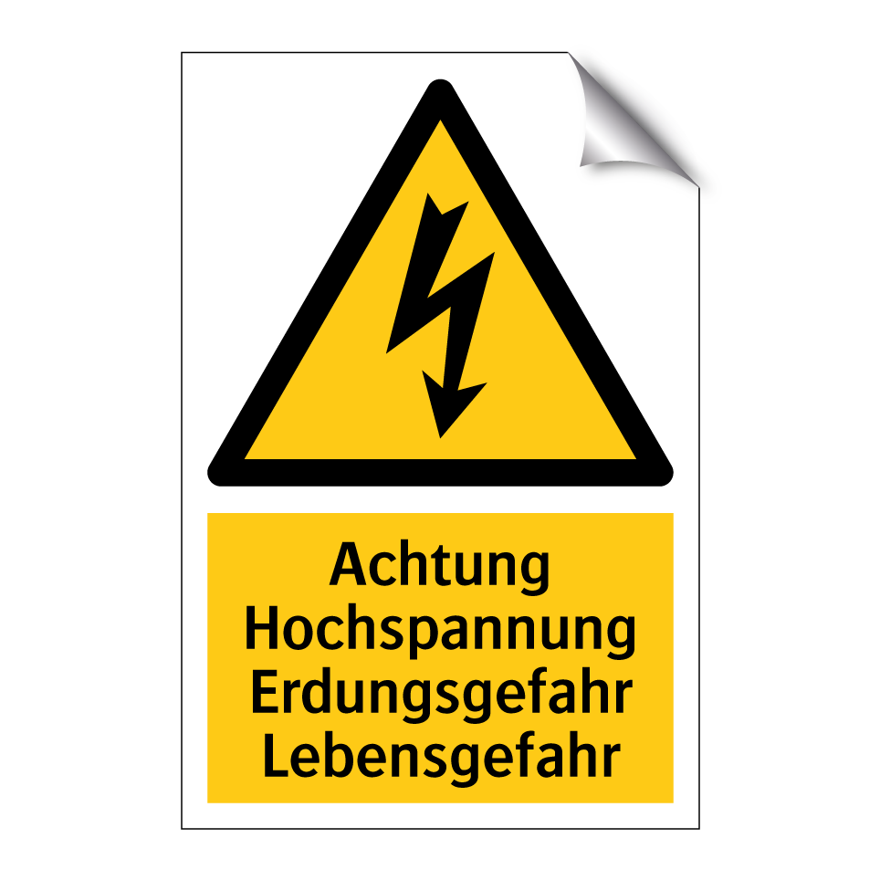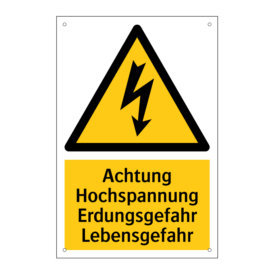 Warnschild mit dem Text Achtung Hochspannung Erdungsgefahr Lebensgefahr