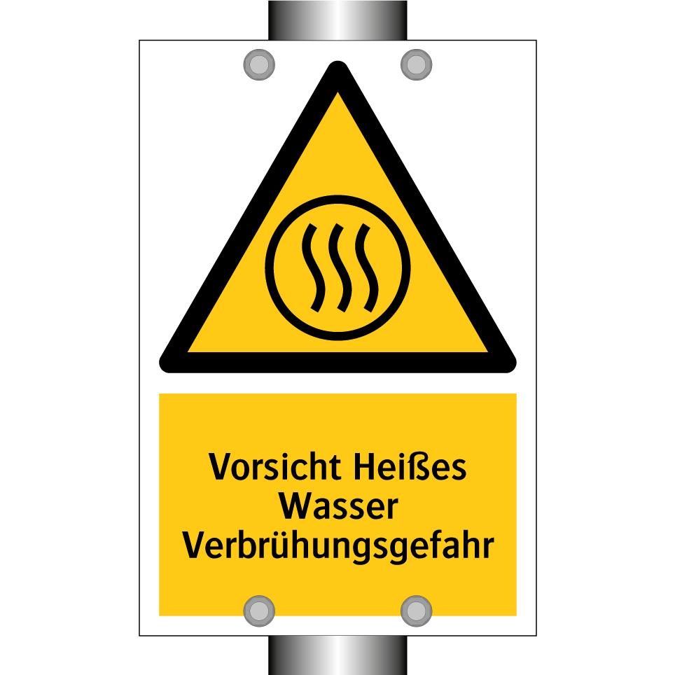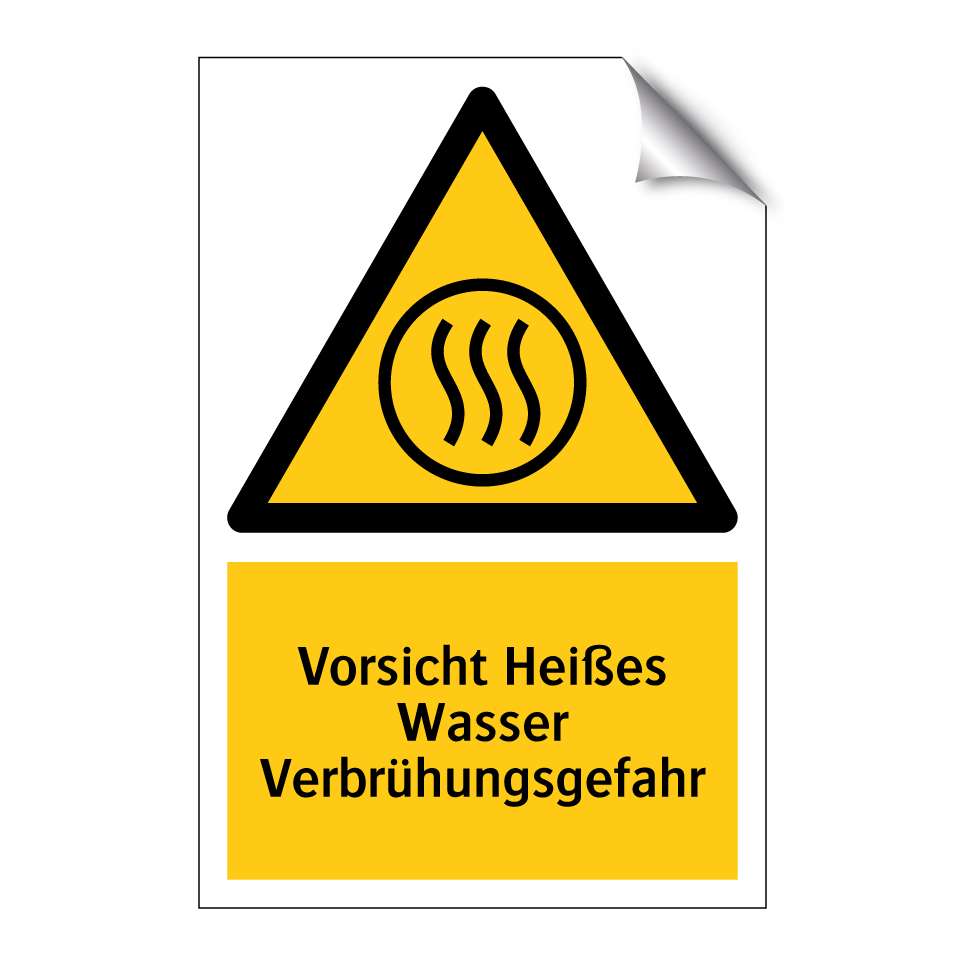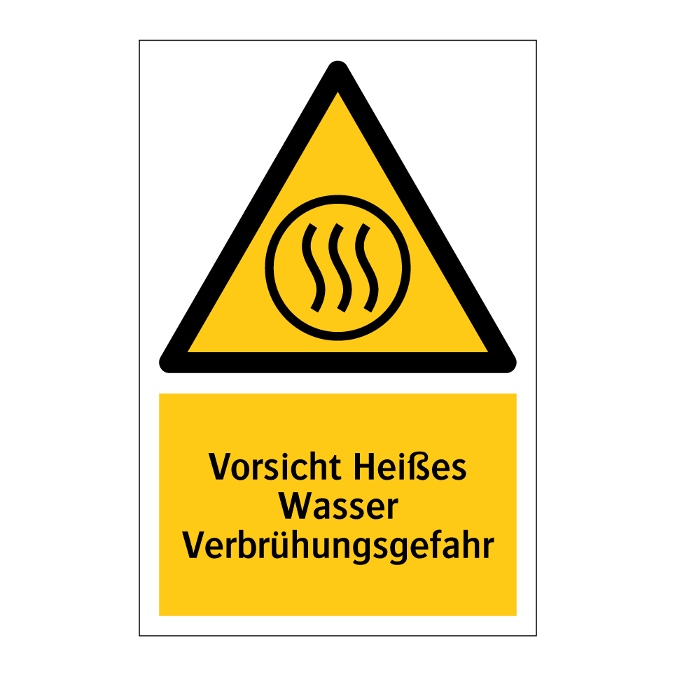 Warnschild mit dem Text Vorsicht Heißes Wasser Verbrühungsgefahr