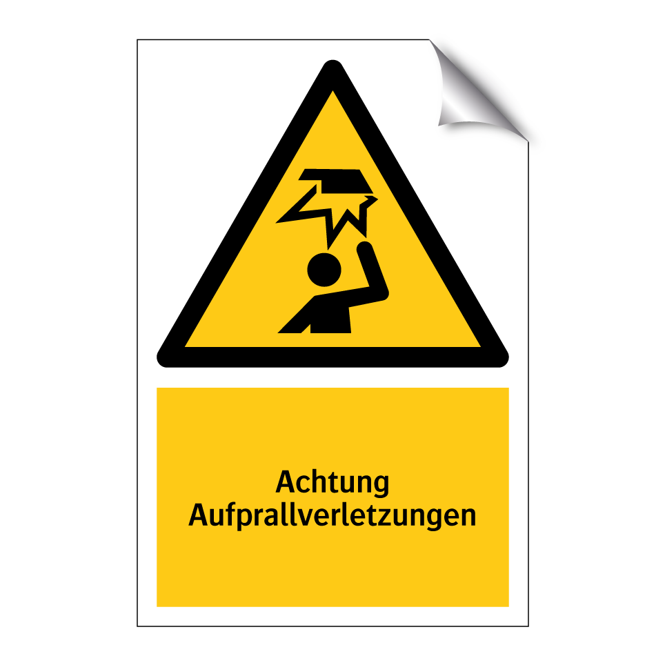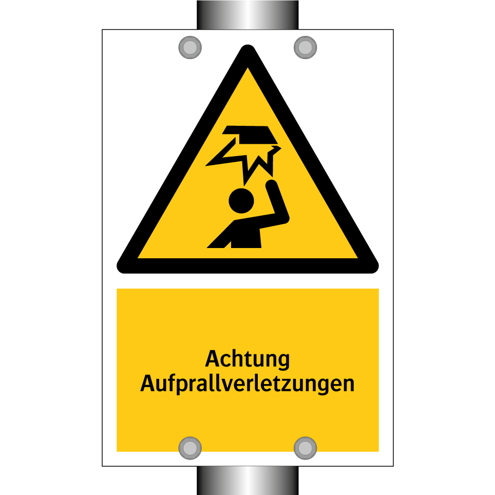 Warnschild mit dem Text Achtung Aufprallverletzungen