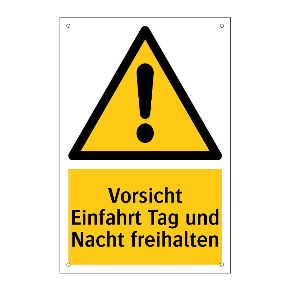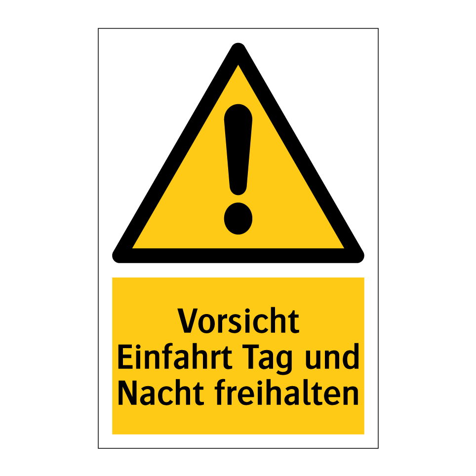 Warnschild mit dem Text Vorsicht Einfahrt Tag und Nacht freihalten