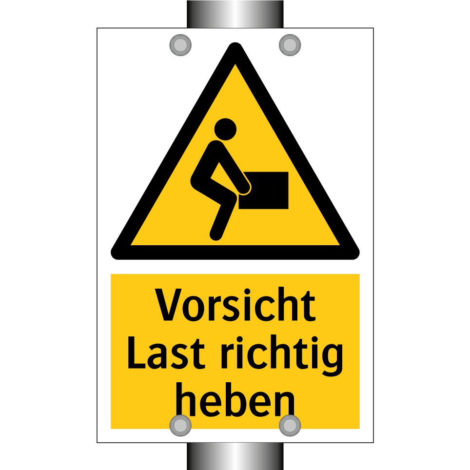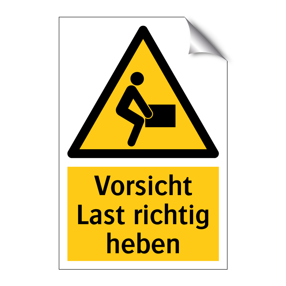 Warnschild mit dem Text Vorsicht Last richtig heben