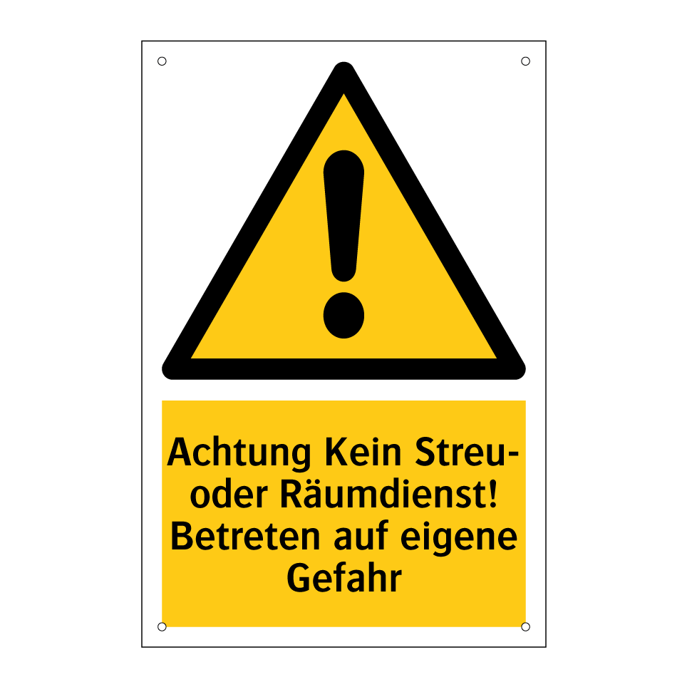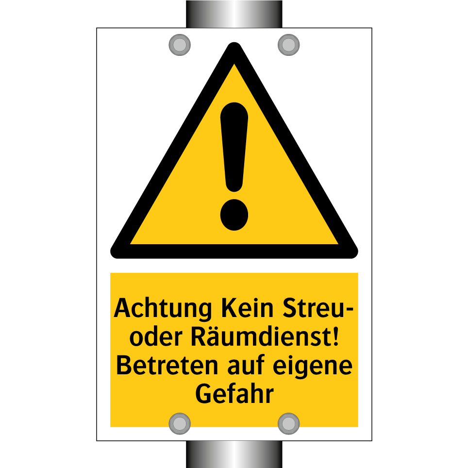 Warnschild mit dem Text Achtung Kein Streu- oder Räumdienst! Betreten auf eigene Gefahr