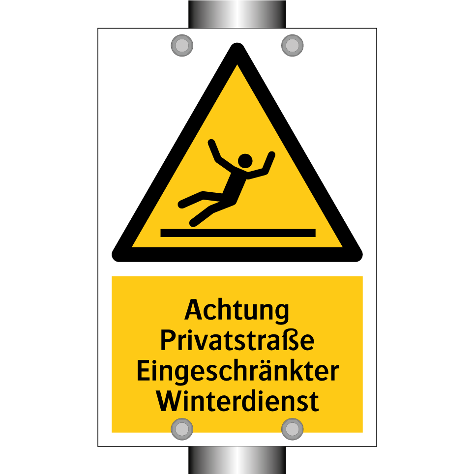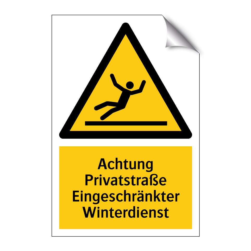 Warnschild mit dem Text Achtung Privatstraße Eingeschränkter Winterdienst