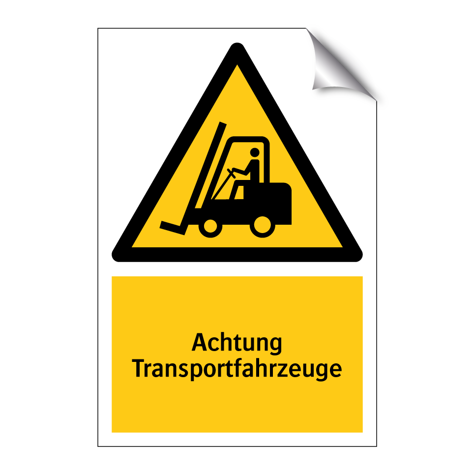 Warnschild mit dem Text Achtung Transportfahrzeuge