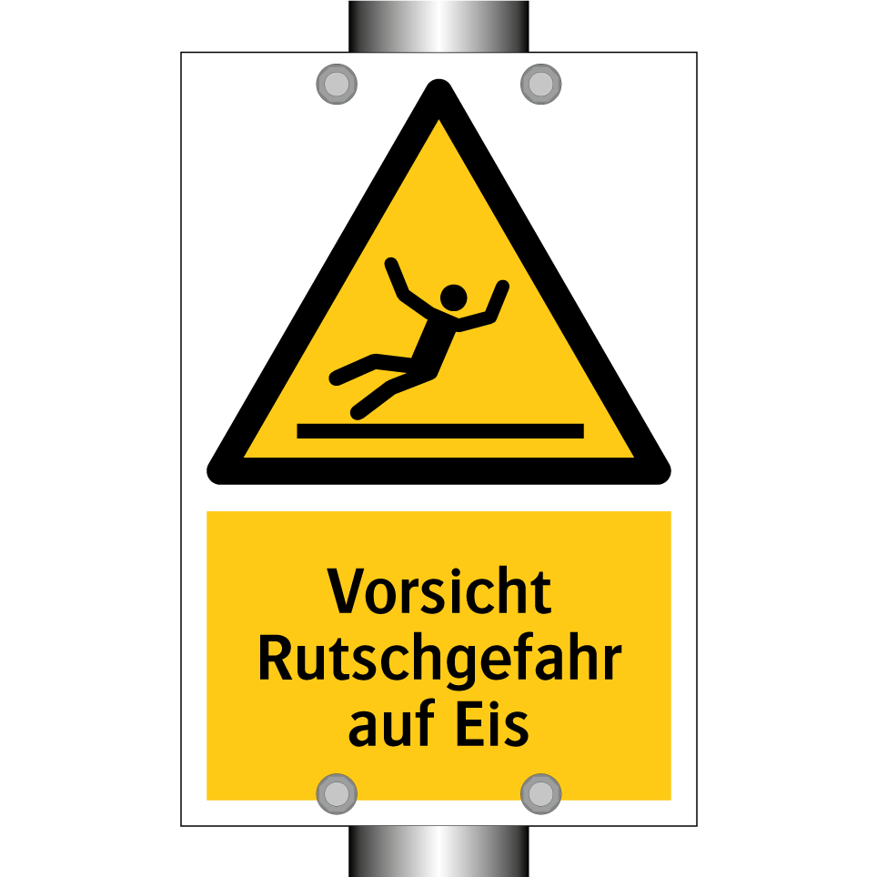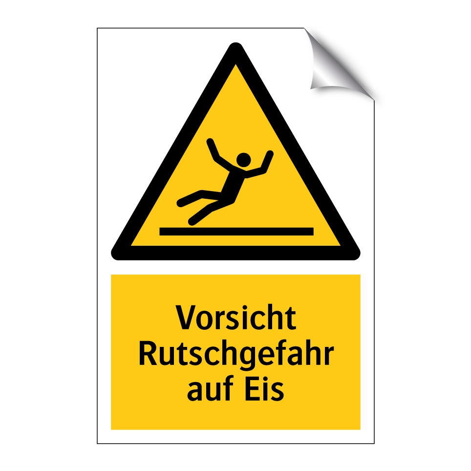 Warnschild mit dem Text Vorsicht Rutschgefahr auf Eis