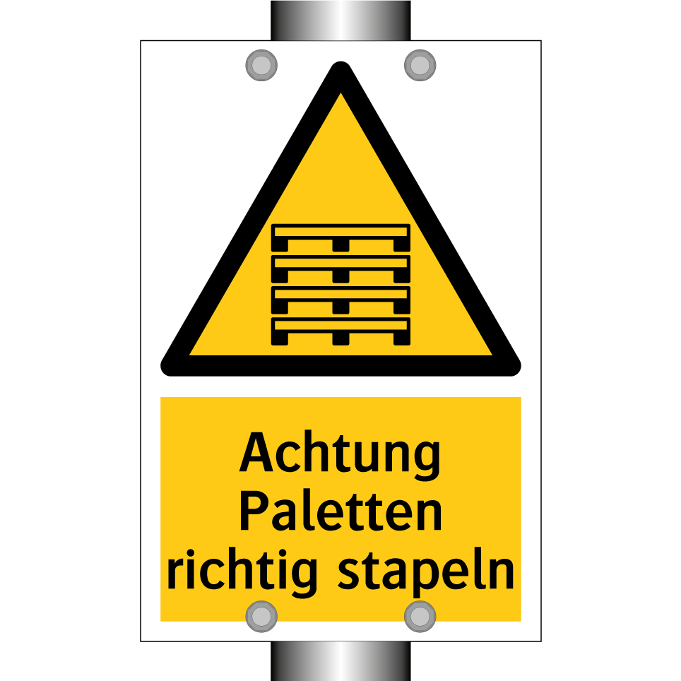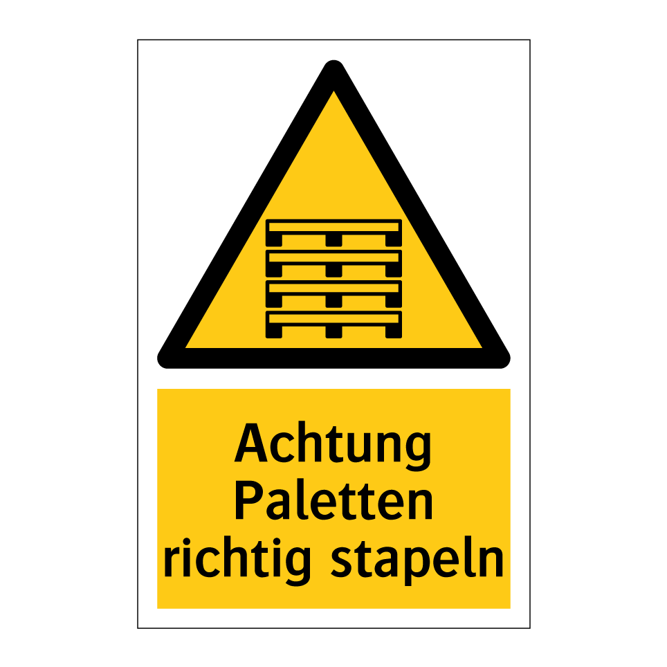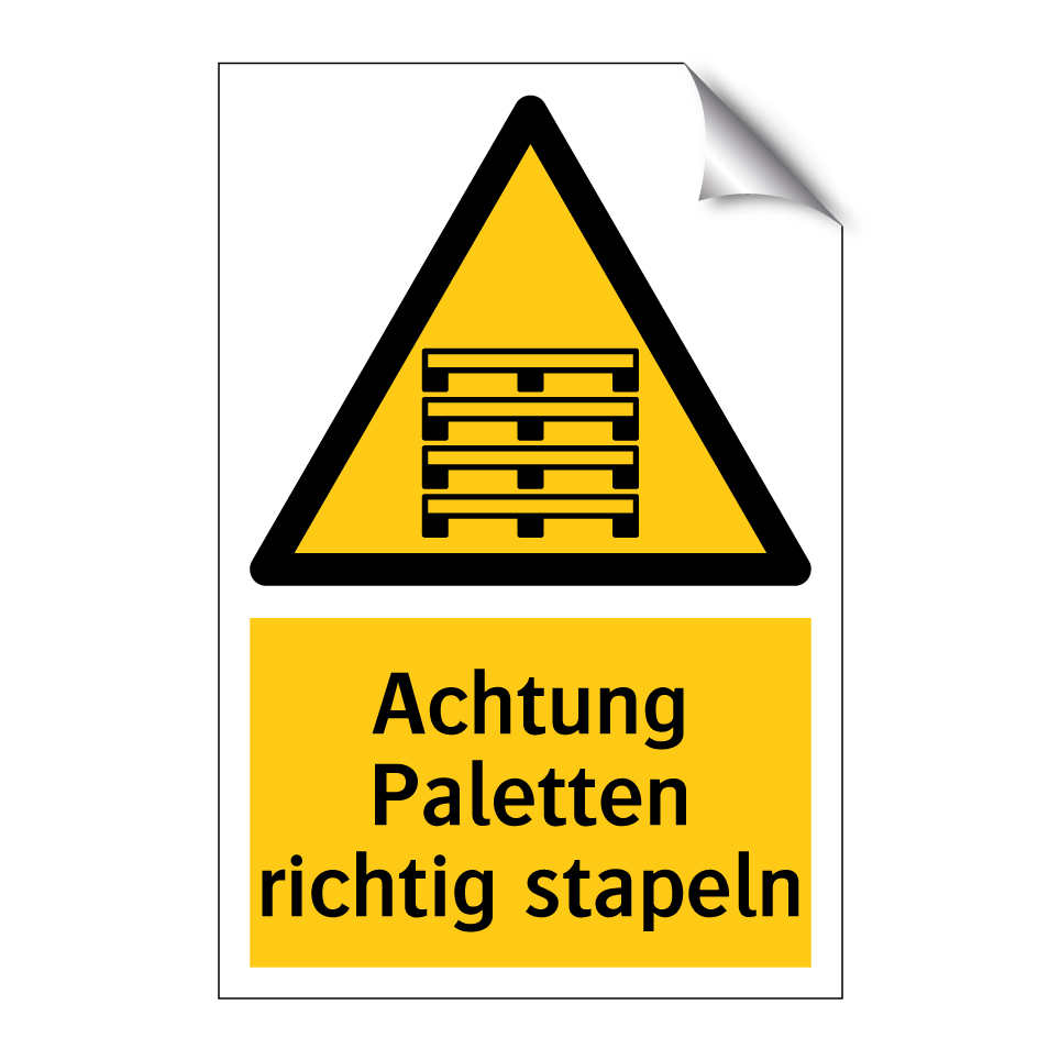 Warnschild mit dem Text Achtung Paletten richtig stapeln