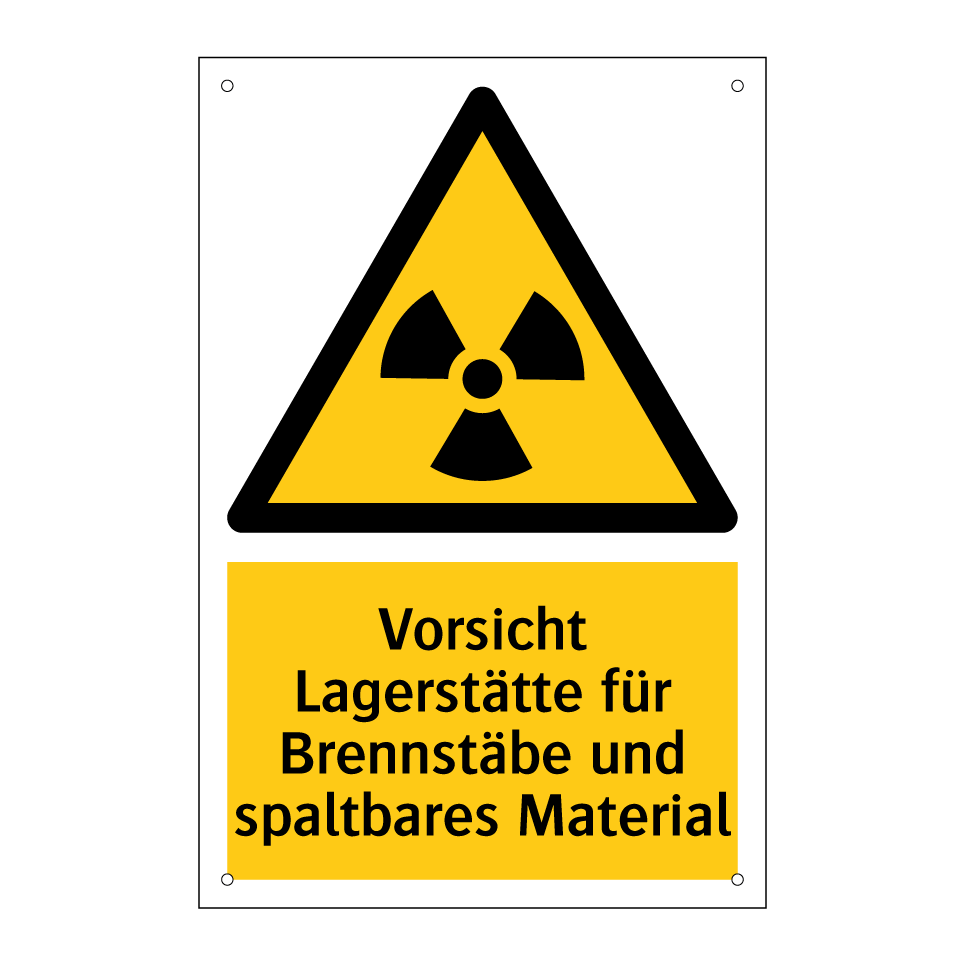 Diese auffällige Warnschild mit gelbem Hintergrund und schwarzer Schrift ist ideal für den Einsatz in Bereichen, in denen besondere Vorsicht geboten ist. Sie dient dazu, auf die Lagerung von Brennstäben und spaltbarem Material hinzuweisen und somit potenzielle Gefahren zu minimieren. Diese Warnschilder sind besonders geeignet für industrielle Anlagen, Lagerhäuser oder andere Einrichtungen, in denen radioaktive Materialien gehandhabt werden. Platzieren Sie das Schild an gut sichtbaren Stellen, um sicherzustellen, dass alle Mitarbeiter und Besucher rechtzeitig gewarnt werden. Durch die klare Symbolik und die prägnante Botschaft wird die Sicherheit am Arbeitsplatz erhöht.