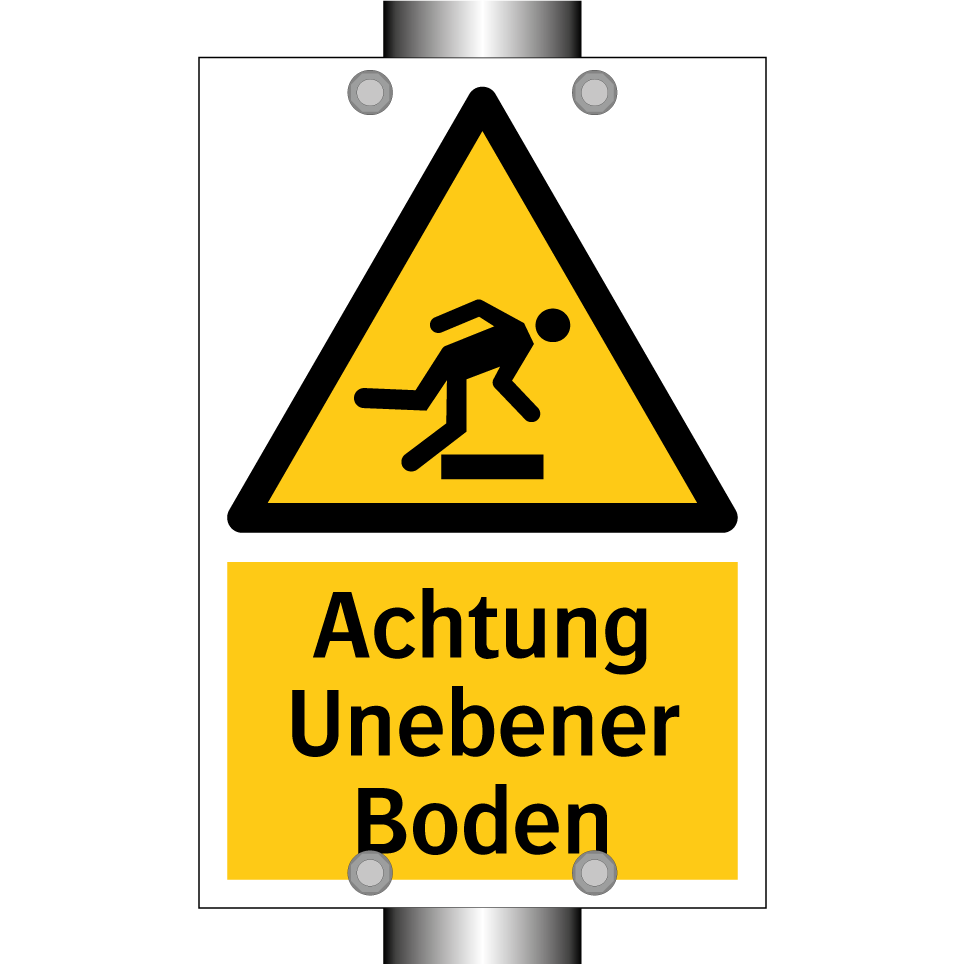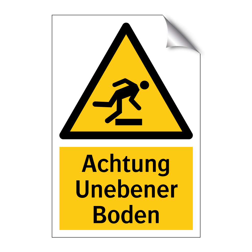 Diese Warnschild mit gelbem Hintergrund und schwarzem Text ist ideal, um auf unebene Bodenverhältnisse hinzuweisen. Es eignet sich hervorragend für den Einsatz in Lagerhäusern, Baustellen oder anderen industriellen Umgebungen, wo Vorsicht geboten ist. Die auffällige Symbolik sorgt dafür, dass die Botschaft klar und deutlich wahrgenommen wird. Platzieren Sie das Warnschild an Eingängen, in Fluren oder an anderen strategischen Punkten, um die Sicherheit zu erhöhen und Unfälle zu vermeiden. Diese Warnschilder sind unverzichtbar, um Mitarbeiter und Besucher auf potenzielle Gefahren aufmerksam zu machen und so ein sicheres Arbeitsumfeld zu gewährleisten.