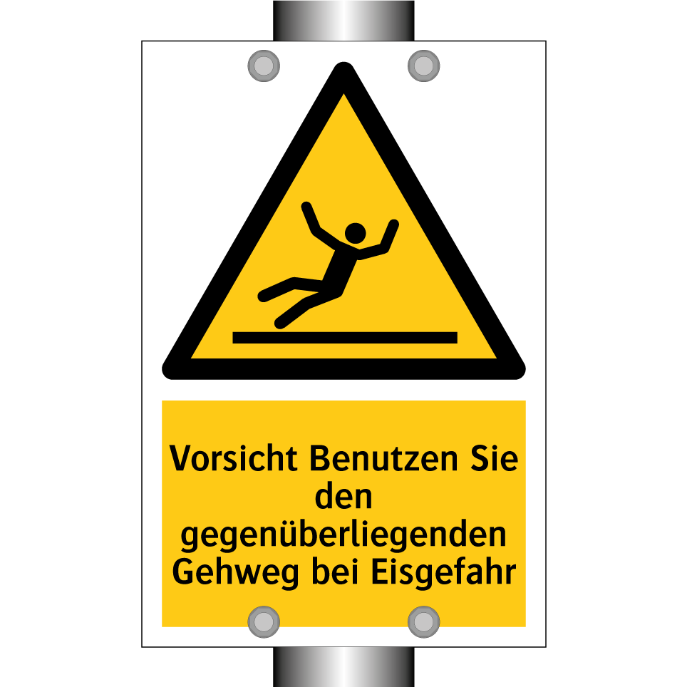Diese auffällige Warnschild mit gelbem Hintergrund und schwarzem Text ist ideal, um Passanten auf mögliche Gefahren aufmerksam zu machen. Besonders in der kalten Jahreszeit, wenn Glatteis droht, ist es wichtig, Fußgänger rechtzeitig zu warnen. Diese Warnschilder sind perfekt geeignet für den Einsatz in städtischen Gebieten, vor Geschäften oder an öffentlichen Plätzen, wo Bürger auf alternative Gehwege hingewiesen werden müssen. Durch die klare Symbolik und die prägnante Botschaft wird die Sicherheit der Passanten erhöht. Platzieren Sie das Warnschild an gut sichtbaren Stellen, um maximale Aufmerksamkeit zu gewährleisten und Unfälle zu vermeiden.