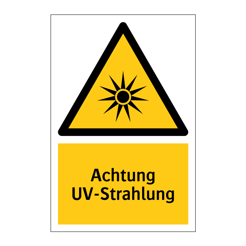 Warnschild mit dem Text Achtung UV-Strahlung