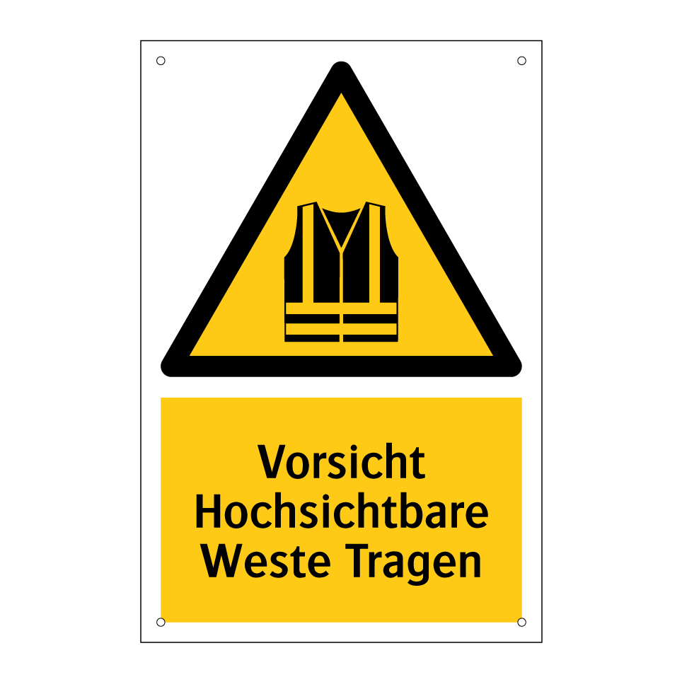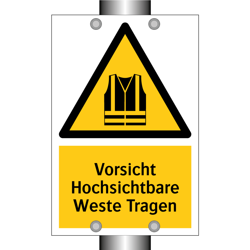 Warnschild mit dem Text Vorsicht Hochsichtbare Weste Tragen