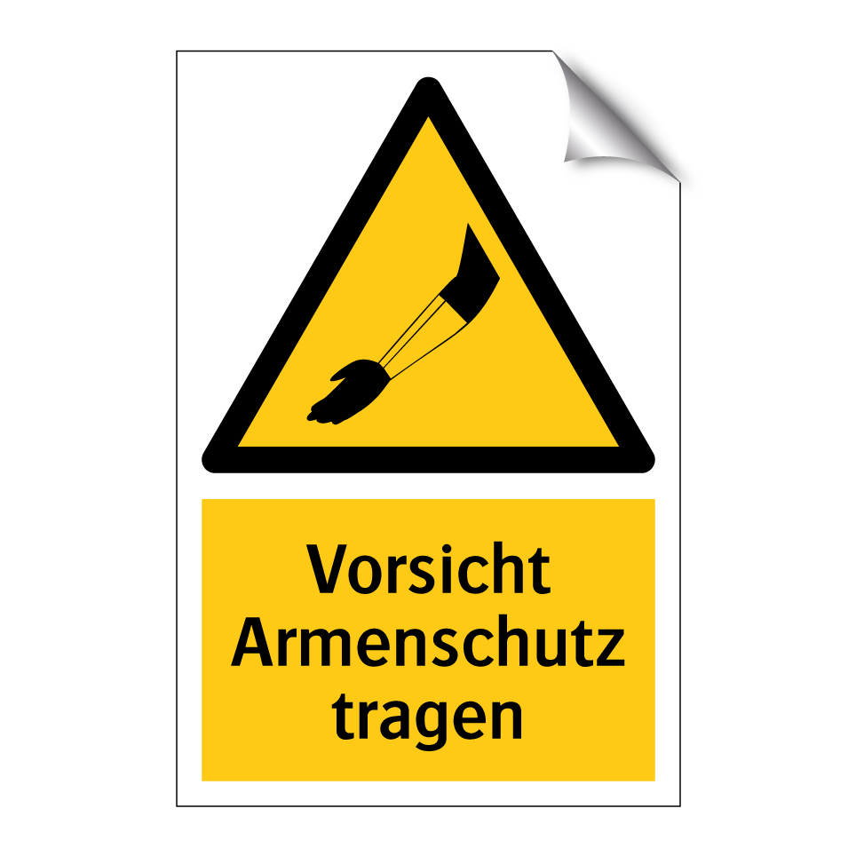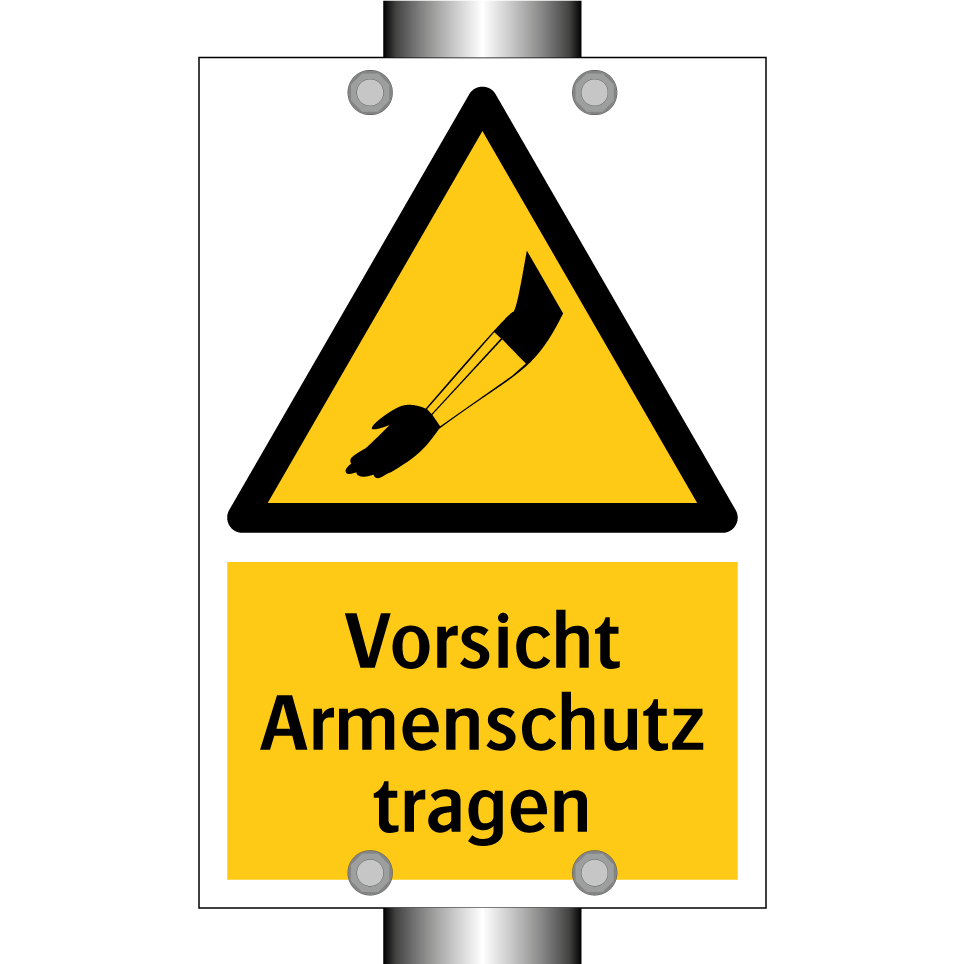 Warnschild mit dem Text Vorsicht Armenschutz tragen