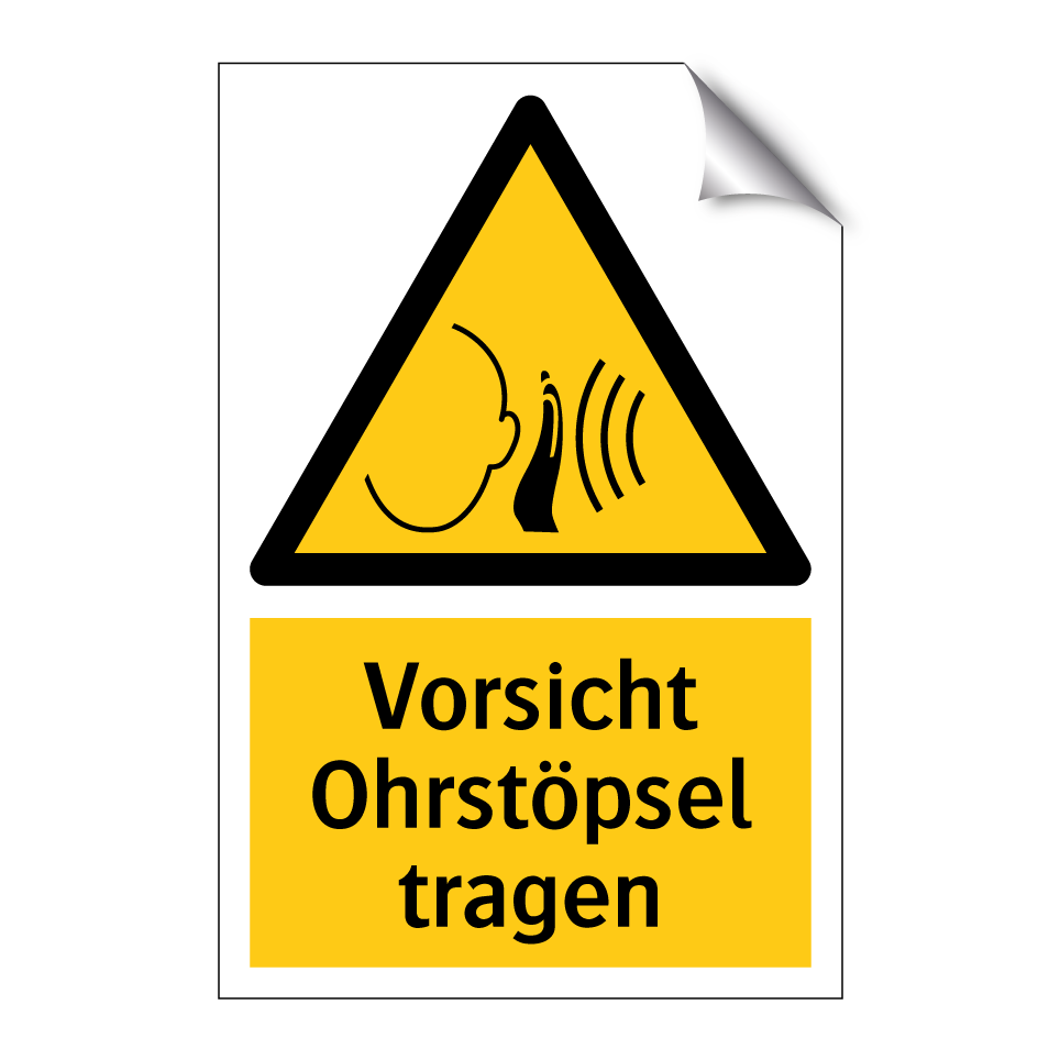 Warnschild mit dem Text Vorsicht Ohrstöpsel tragen