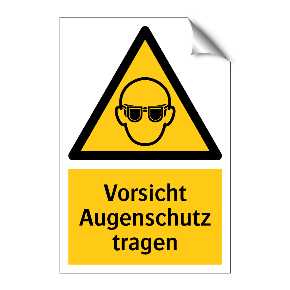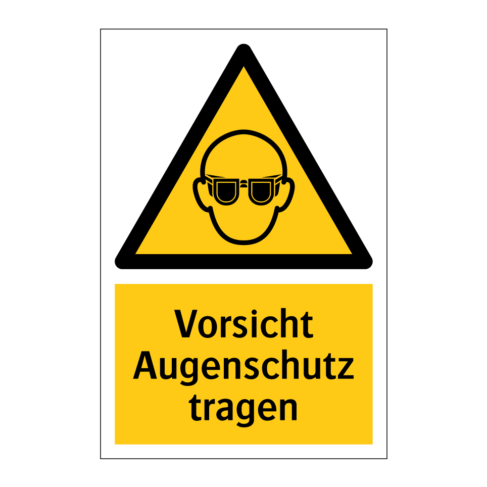 Warnschild mit dem Text Vorsicht Augenschutz tragen
