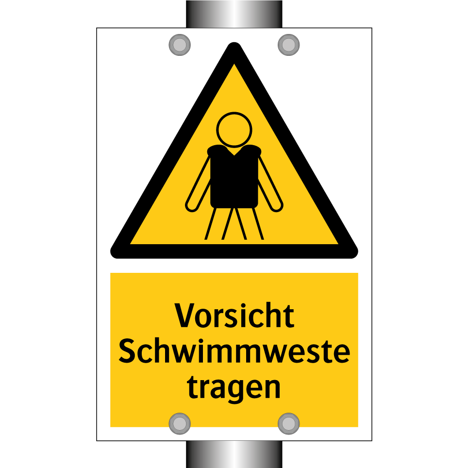Warnschild mit dem Text Vorsicht Schwimmweste tragen