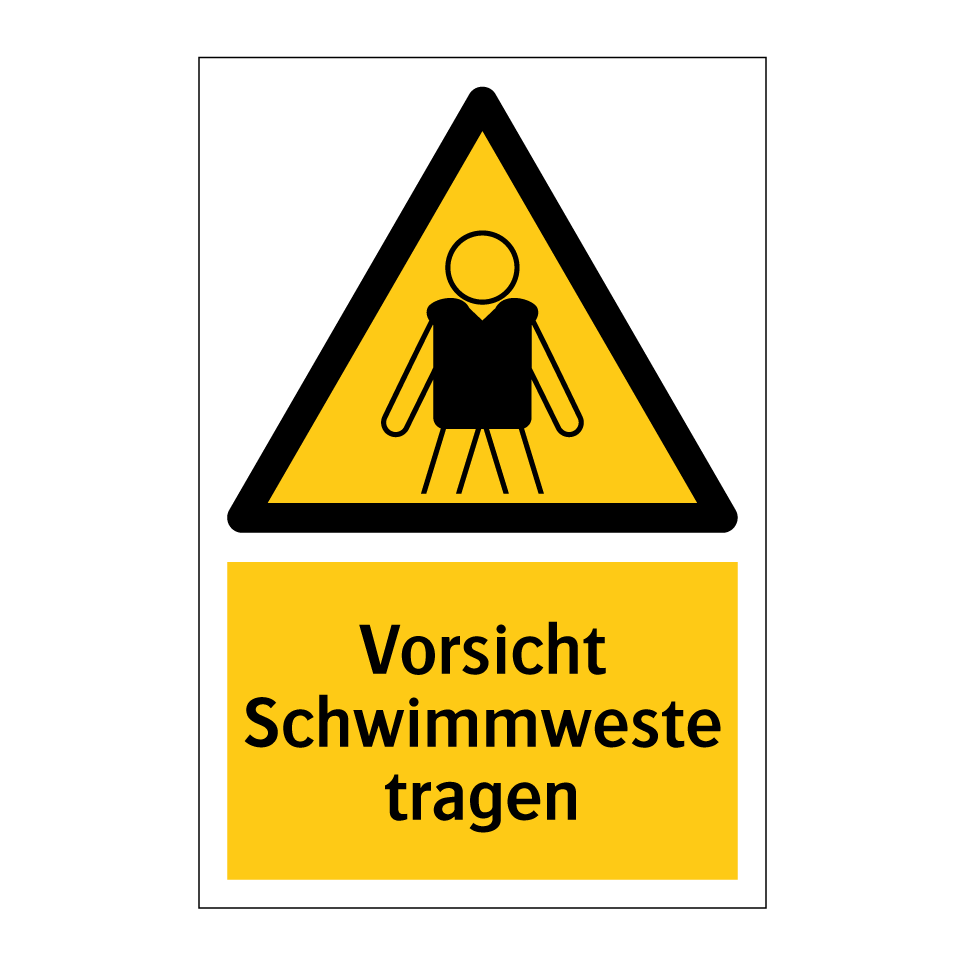 Diese auffällige Warnschild mit gelbem Hintergrund und schwarzem Text ist ideal, um auf die Notwendigkeit einer Schwimmweste hinzuweisen. Perfekt geeignet für Schwimmbäder, Bootsanlegestellen oder Wassersportzentren, sorgt dieses Warnschilder für erhöhte Sicherheit und Aufmerksamkeit. Die klare Symbolik und prägnante Botschaft machen es einfach, die Bedeutung sofort zu erfassen. Platzieren Sie es an gut sichtbaren Stellen, um sicherzustellen, dass alle Besucher die Sicherheitsvorkehrungen beachten. Ob an Stränden, in Yachthäfen oder an Seen, dieses Schild ist ein unverzichtbares Element für die Sicherheit am Wasser.