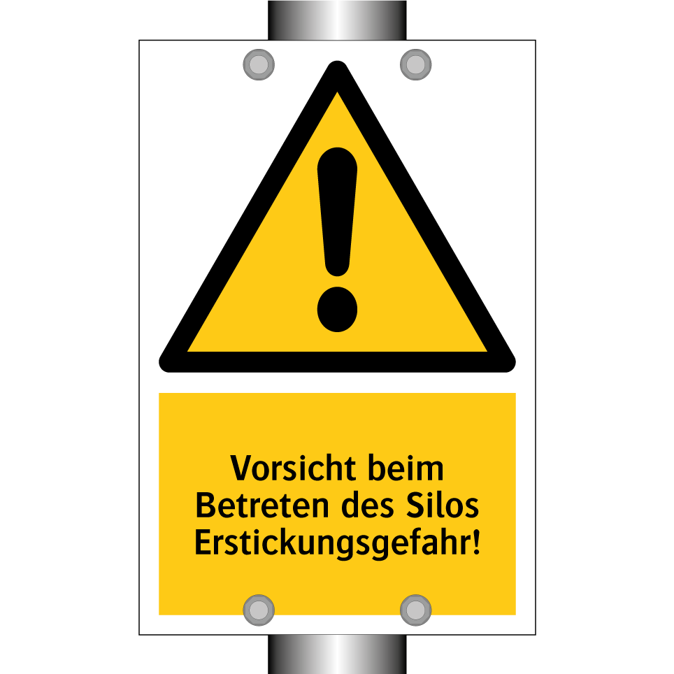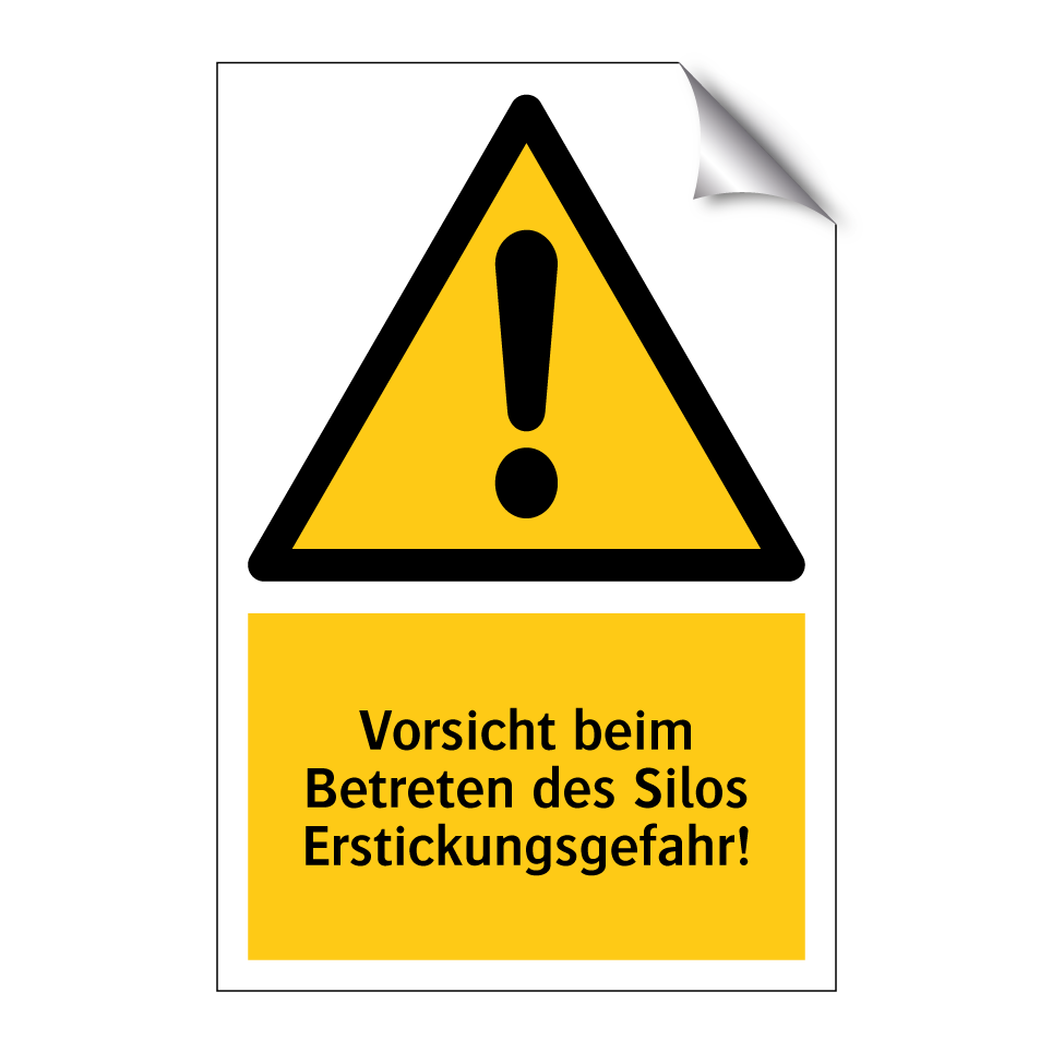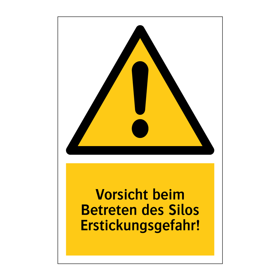 Warnschild mit dem Text Vorsicht beim Betreten des Silos Erstickungsgefahr!