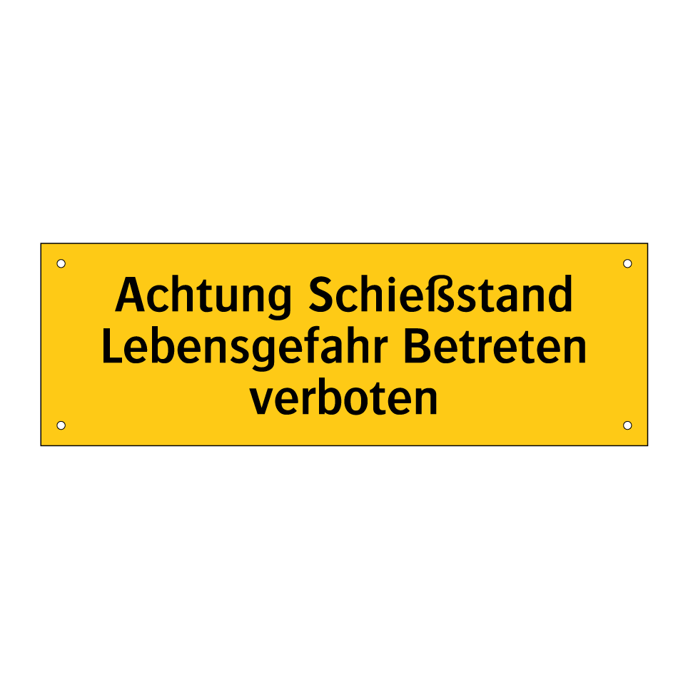 Diese auffällige Warnschild mit gelbem Hintergrund und schwarzer Schrift ist ein unverzichtbares Sicherheitsmerkmal für Schießstände. Es warnt eindringlich vor der Lebensgefahr und dem strikten Betretungsverbot in diesem Bereich. Ideal für den Einsatz in Schießsportanlagen, Jagdgebieten oder militärischen Übungsplätzen, sorgt dieses Warnschild dafür, dass unbefugte Personen fernbleiben und potenzielle Gefahren vermieden werden. Platzieren Sie es an gut sichtbaren Stellen wie Eingängen, Zäunen oder anderen strategischen Punkten, um maximale Aufmerksamkeit zu gewährleisten. Diese Warnschilder sind entscheidend, um die Sicherheit zu erhöhen und das Bewusstsein für die Risiken in der Umgebung zu schärfen.