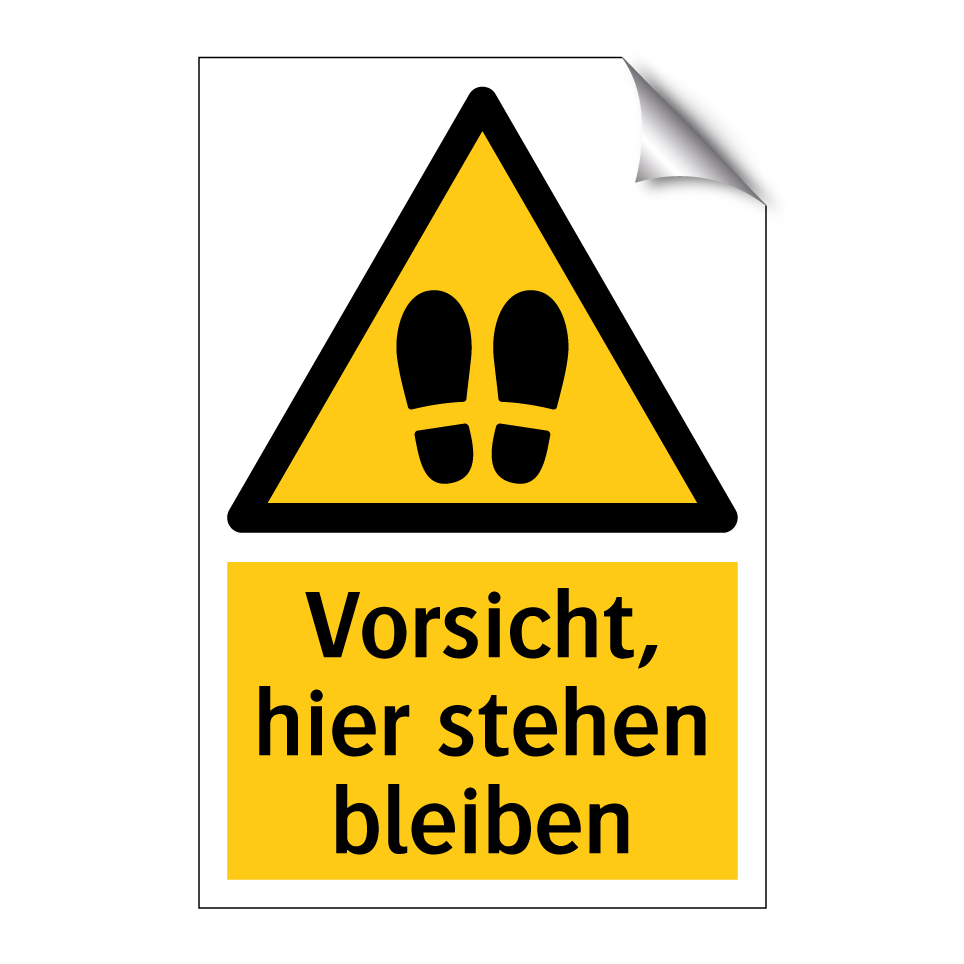 Warnschild mit dem Text Vorsicht, hier stehen bleiben