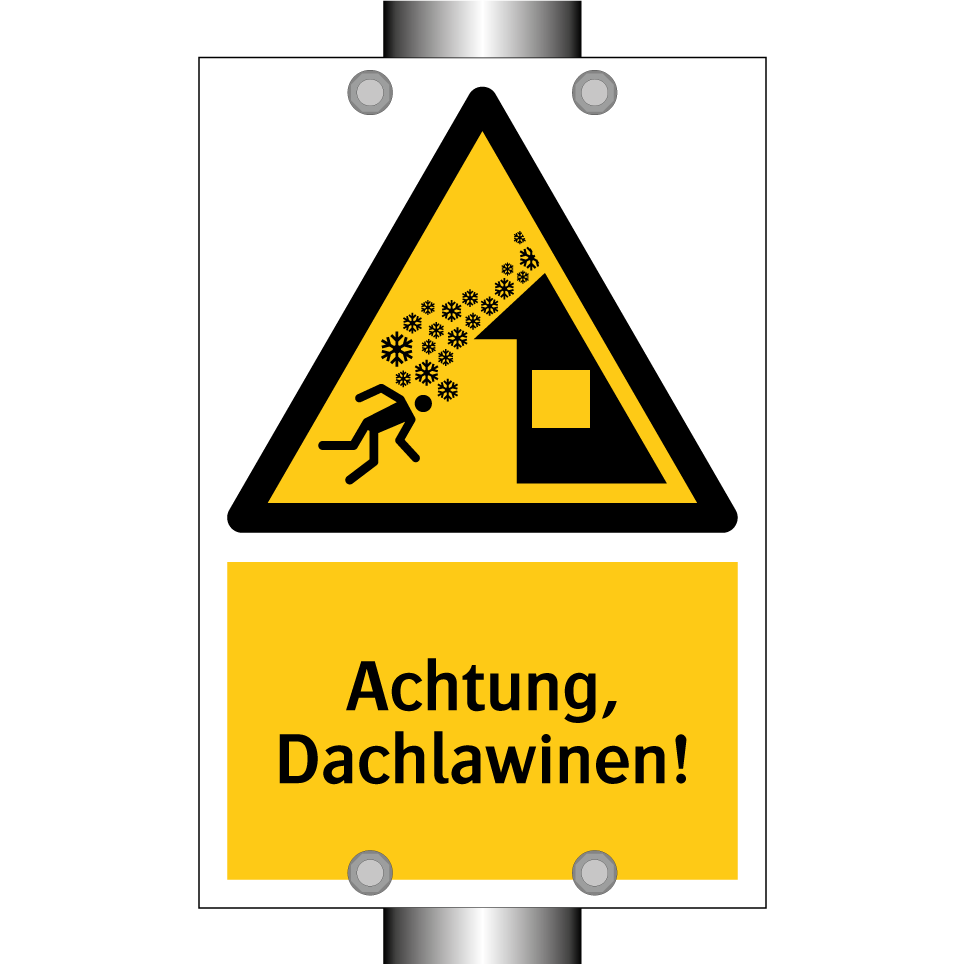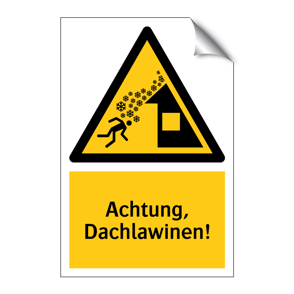 Warnschild mit dem Text Achtung, Dachlawinen!
