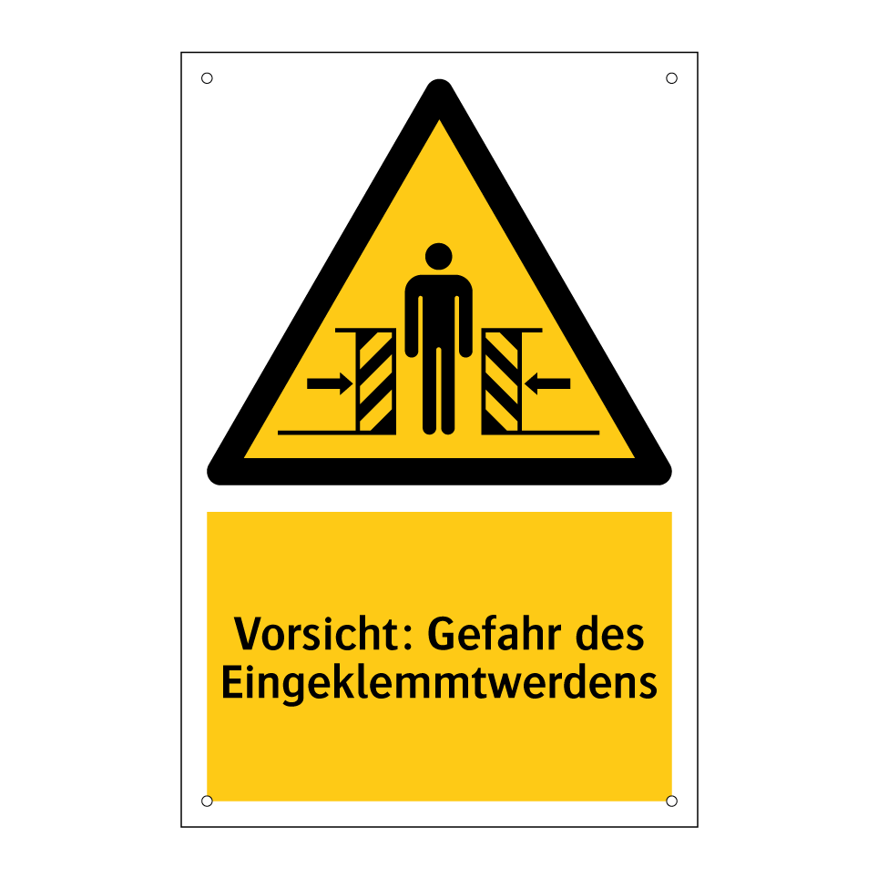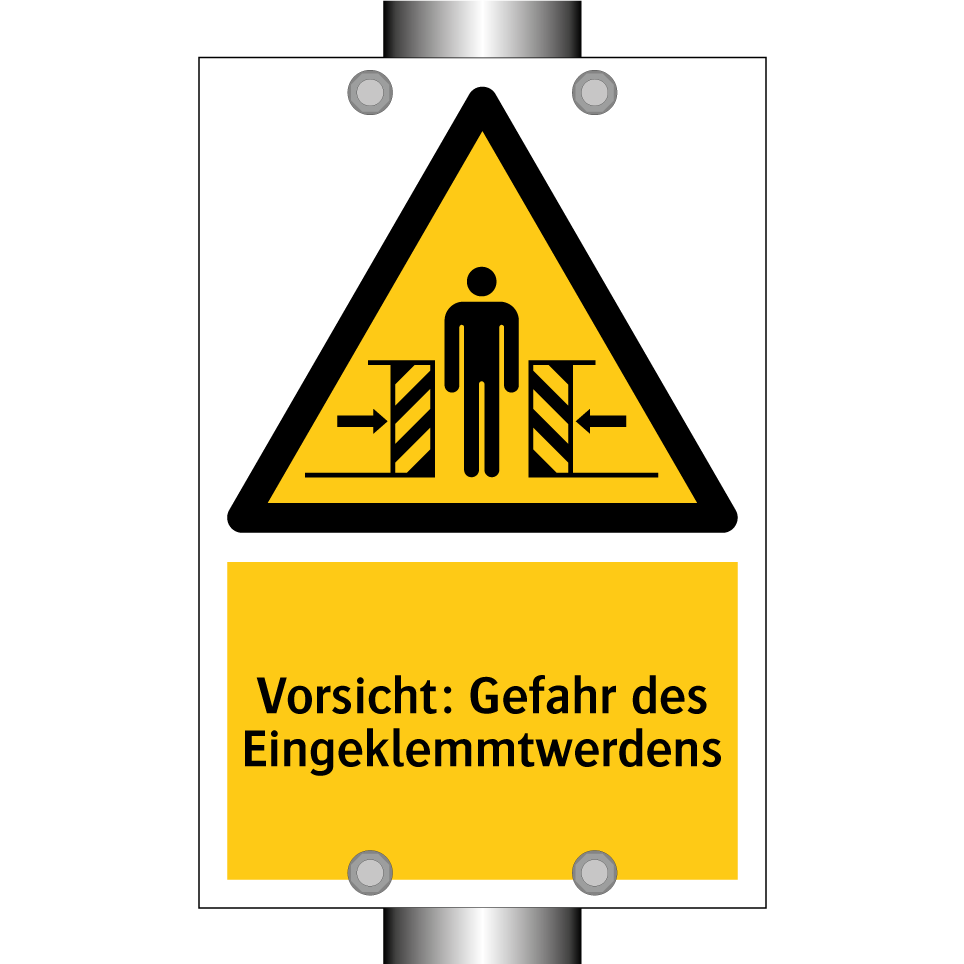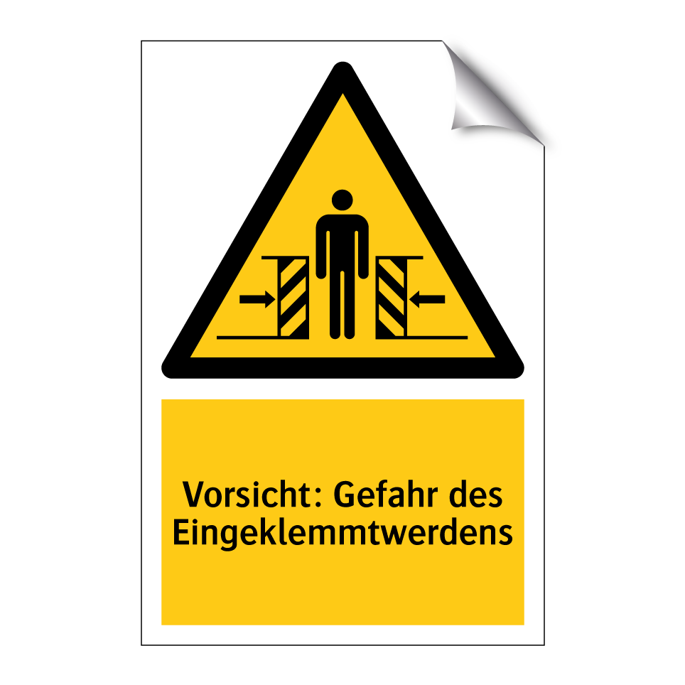 Warnschild mit dem Text Vorsicht: Gefahr des Eingeklemmtwerdens
