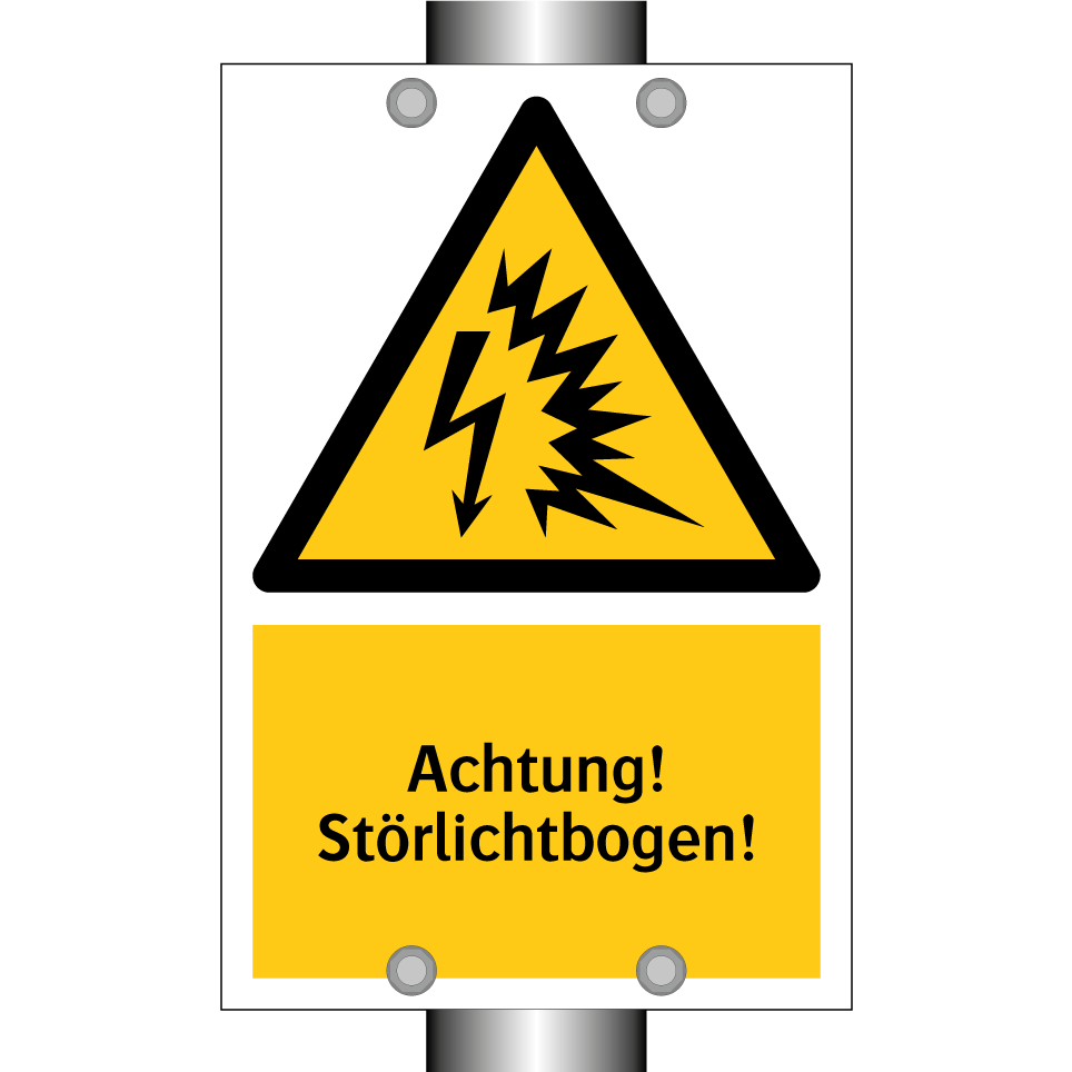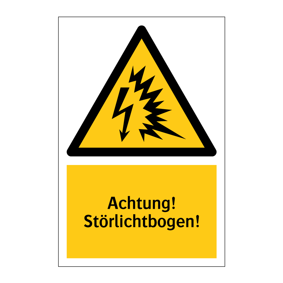 Warnschild mit dem Text Achtung! Störlichtbogen!