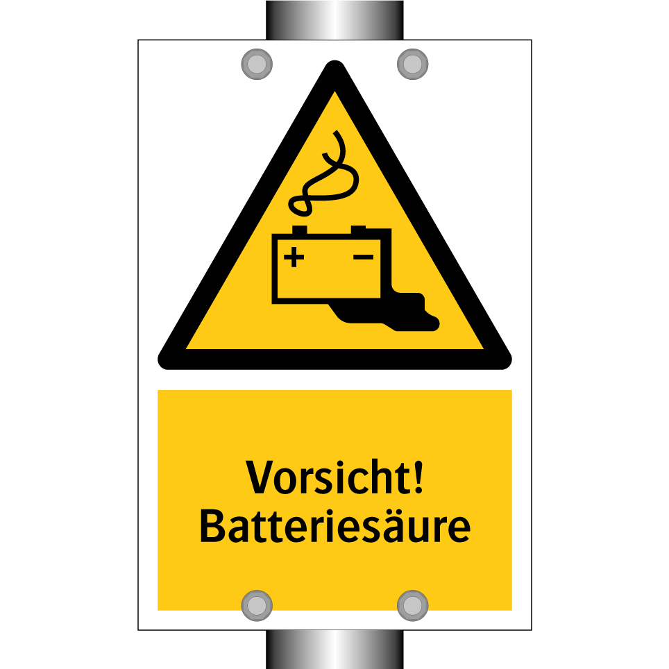 Warnschild mit dem Text Vorsicht! Batteriesäure