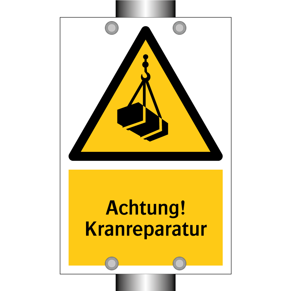 Warnschild mit dem Text Achtung! Kranreparatur