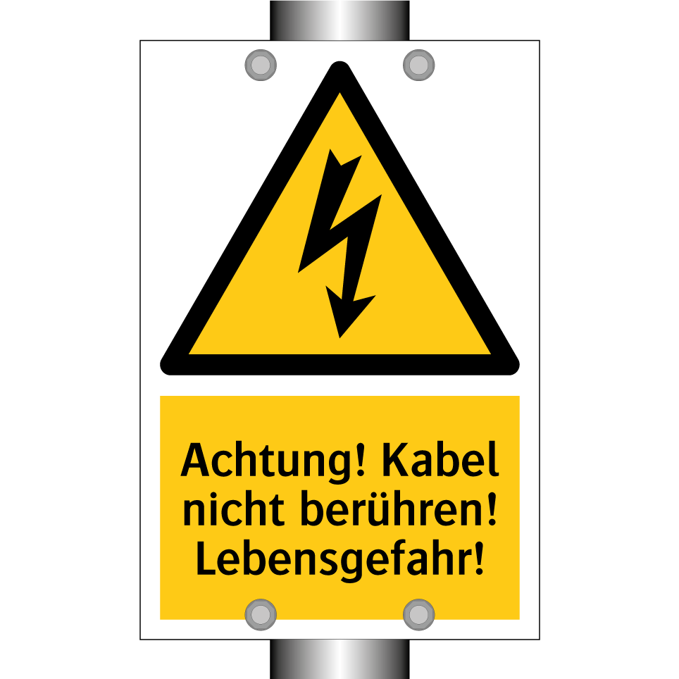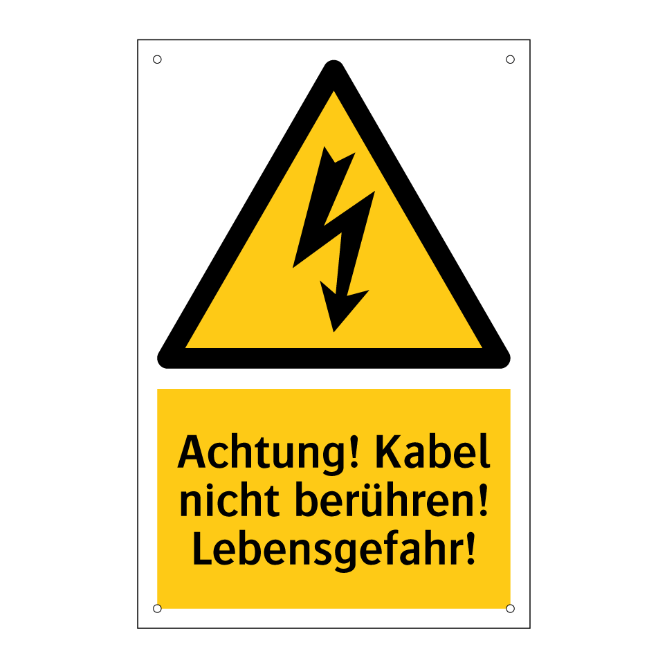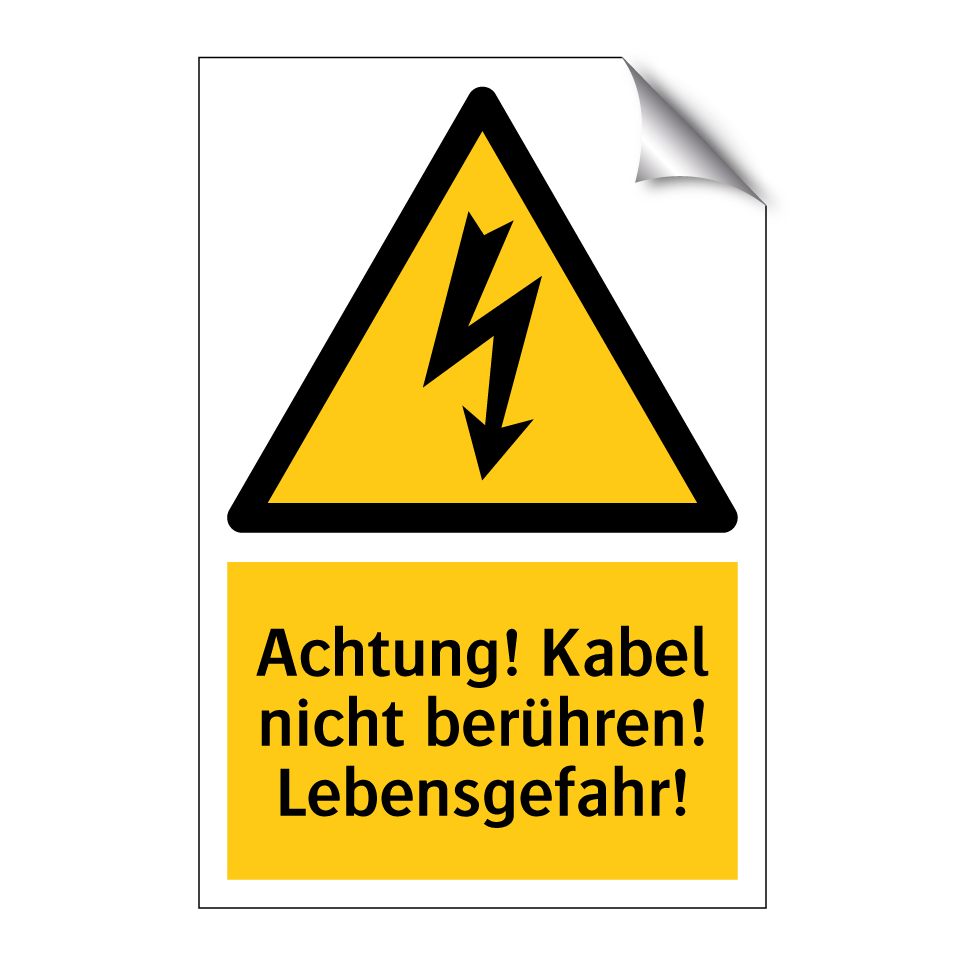 Warnschild mit dem Text Achtung! Kabel nicht berühren! Lebensgefahr!
