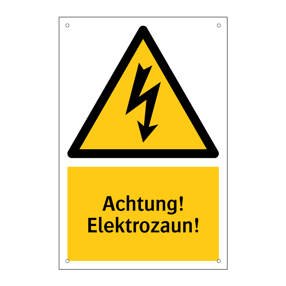 Diese auffällige Warnschild mit gelbem Hintergrund und schwarzer Schrift ist ideal, um auf die Gefahren eines Elektrozauns hinzuweisen. Perfekt geeignet für landwirtschaftliche Betriebe, Tiergehege oder private Grundstücke, sorgt dieses Warnschild für erhöhte Sicherheit und schützt vor ungewolltem Kontakt mit dem Elektrozaun. Platzieren Sie es an gut sichtbaren Stellen entlang des Zauns, um Passanten und Besucher effektiv zu warnen. Die klare Symbolik und die prägnante Botschaft machen es zu einem unverzichtbaren Sicherheitsmerkmal. Nutzen Sie dieses Warnschild, um Unfälle zu vermeiden und die Aufmerksamkeit auf potenzielle Gefahren zu lenken.