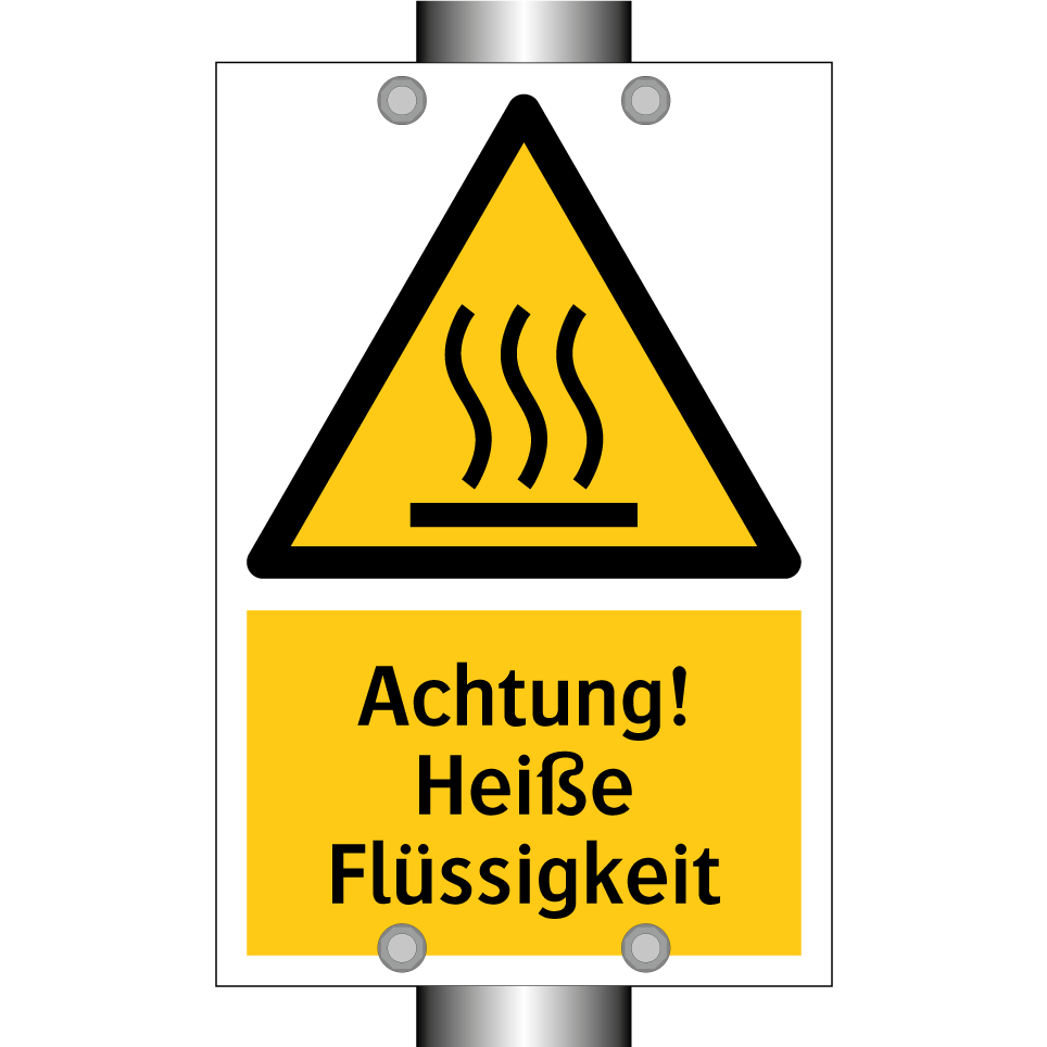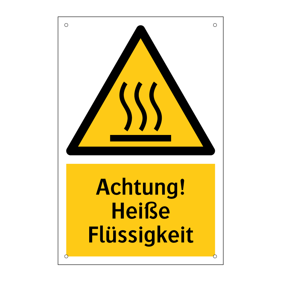Warnschild mit dem Text Achtung! Heiße Flüssigkeit
