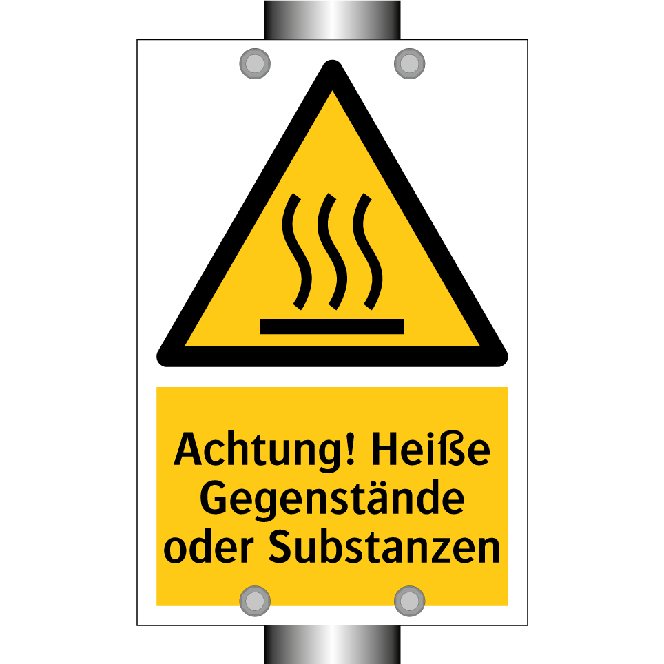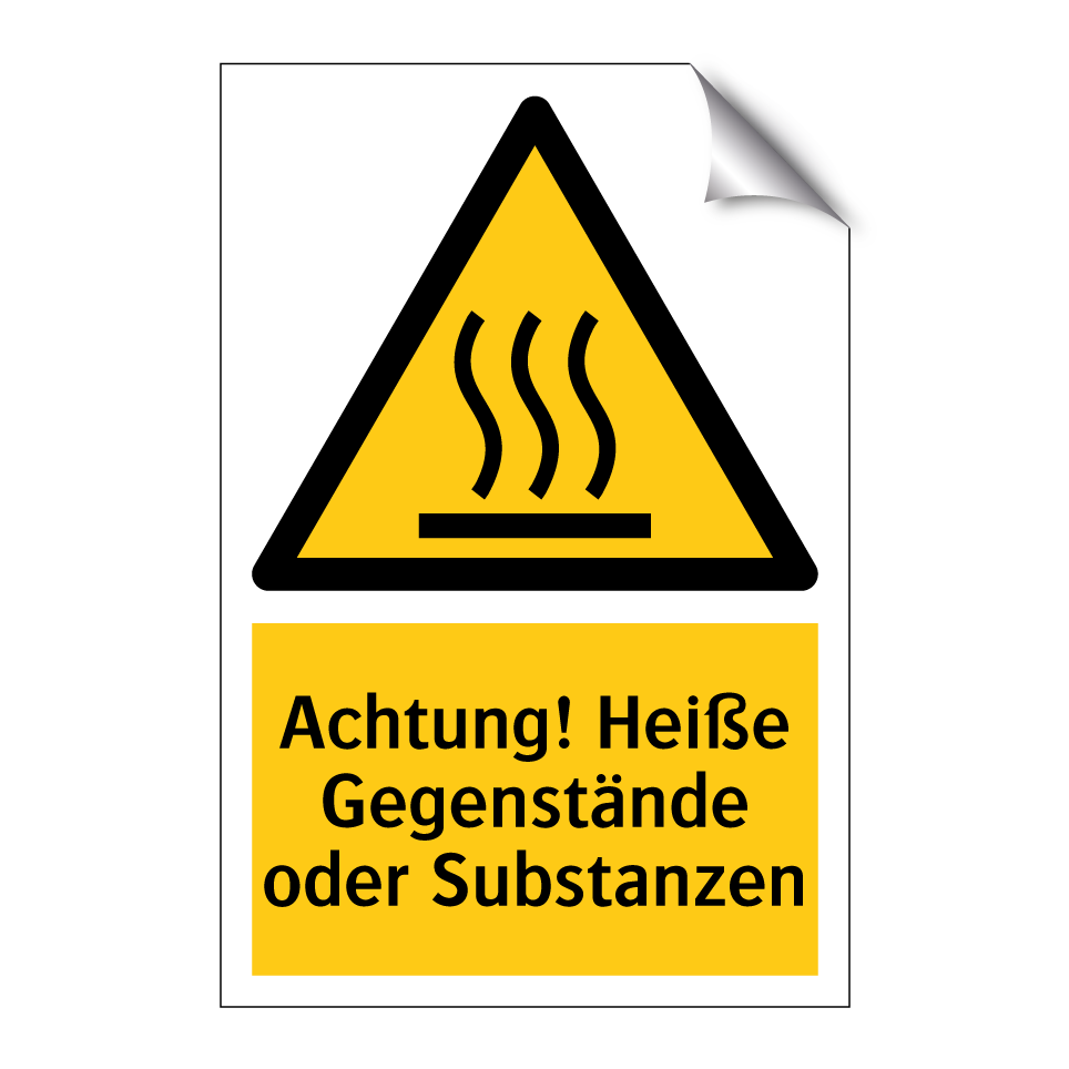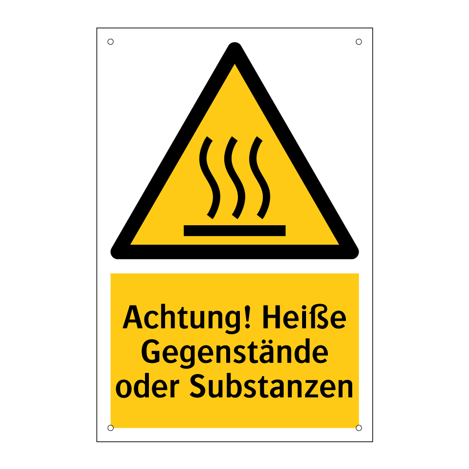 Warnschild mit dem Text Achtung! Heiße Gegenstände oder Substanzen
