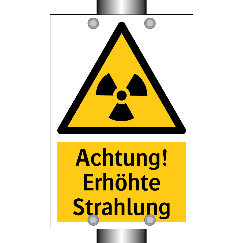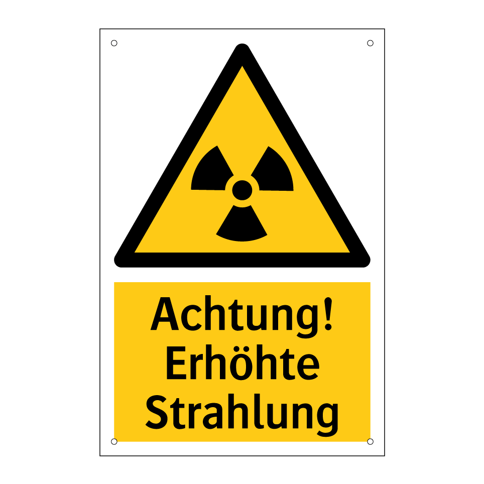 Warnschild mit dem Text Achtung! Erhöhte Strahlung