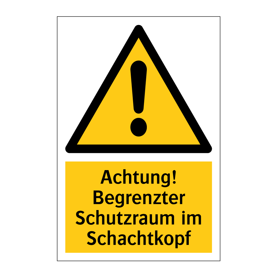 Warnschild mit dem Text Achtung! Begrenzter Schutzraum im Schachtkopf