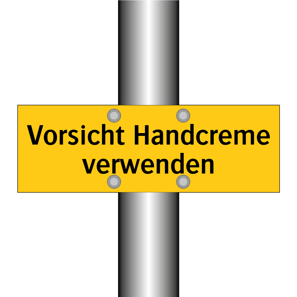 Warnschild mit dem Text Vorsicht Handcreme verwenden