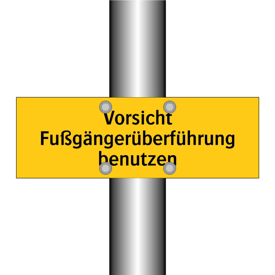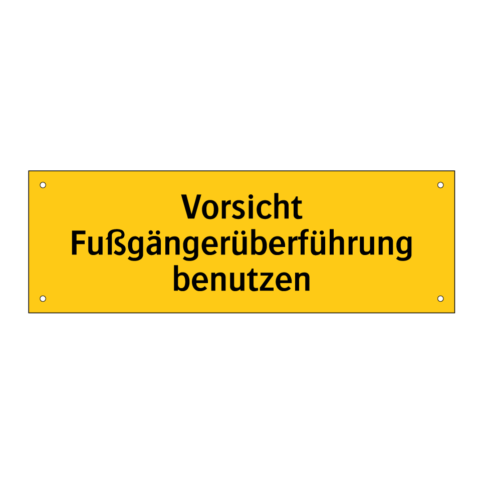 Warnschild mit dem Text Vorsicht Fußgängerüberführung benutzen