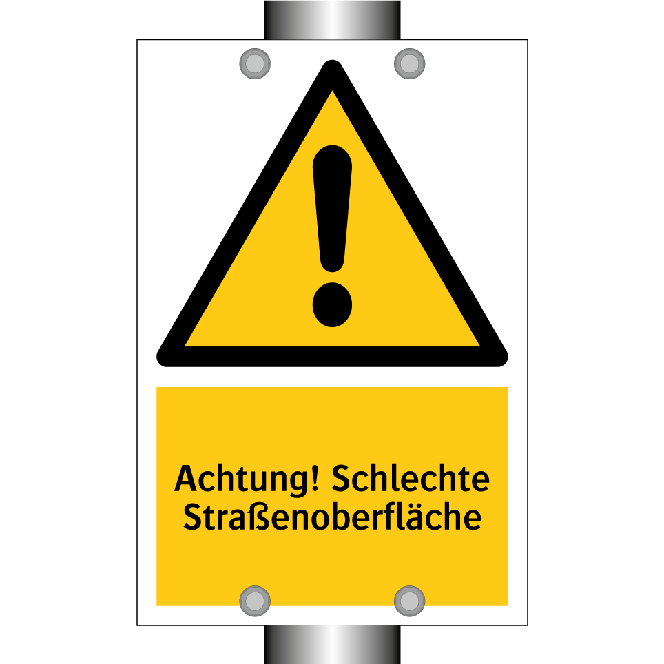 Warnschild mit dem Text Achtung! Schlechte Straßenoberfläche