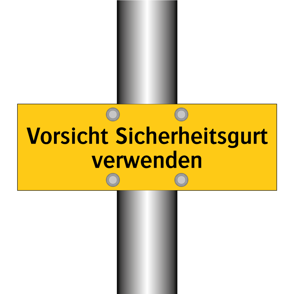 Warnschild mit dem Text Vorsicht Sicherheitsgurt verwenden