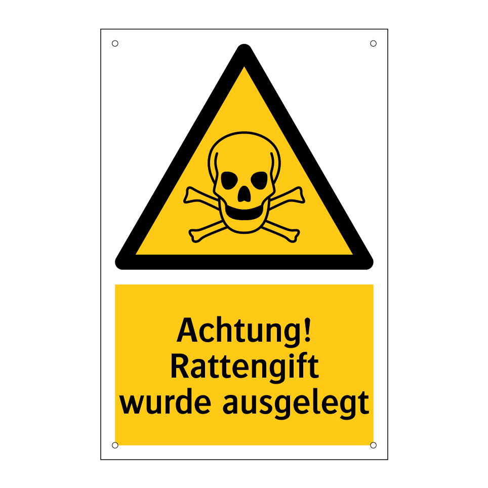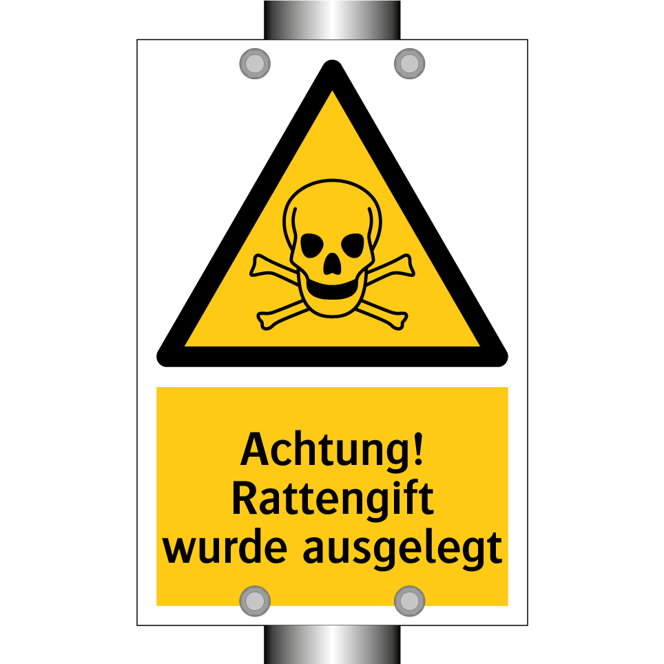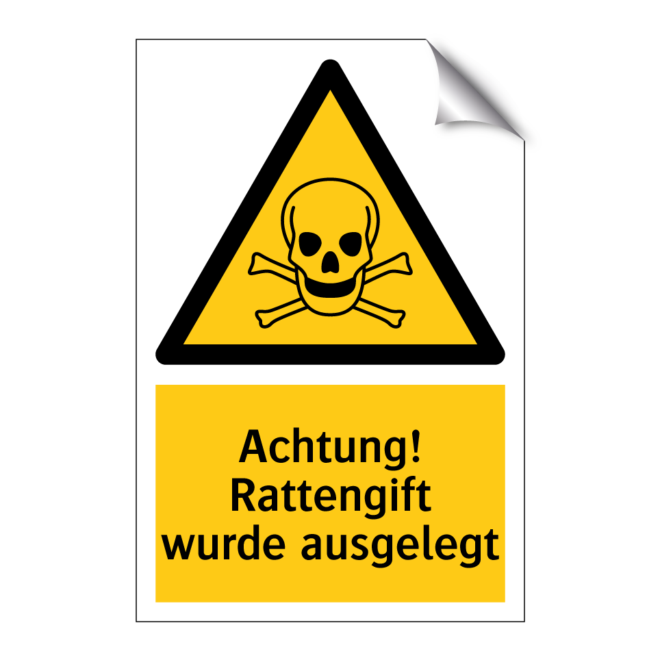 Warnschild mit dem Text Achtung! Rattengift wurde ausgelegt