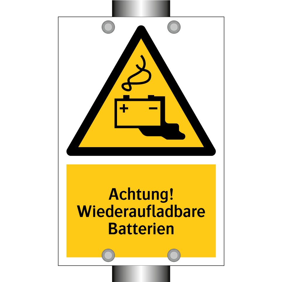 Warnschild mit dem Text Achtung! Wiederaufladbare Batterien