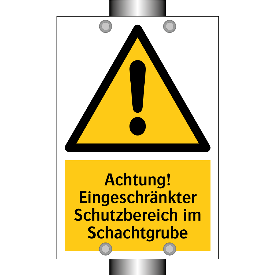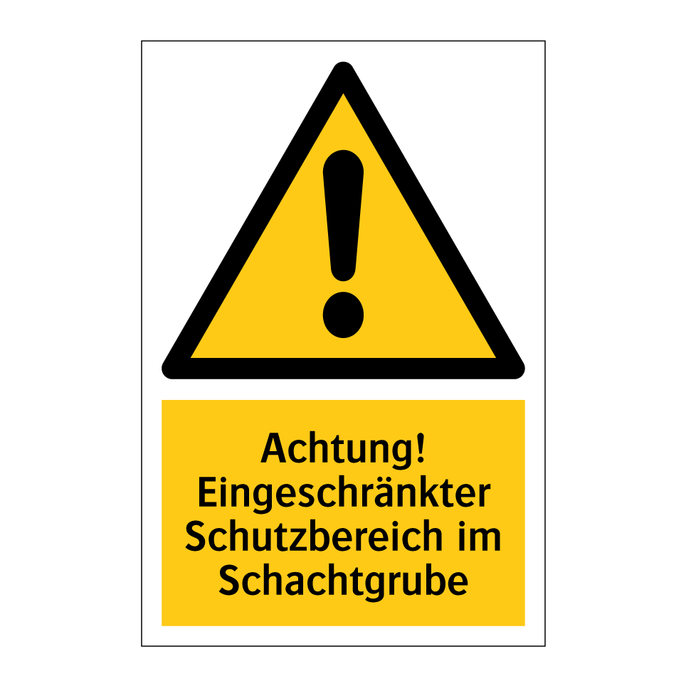 Warnschild mit dem Text Achtung! Eingeschränkter Schutzbereich im Schachtgrube