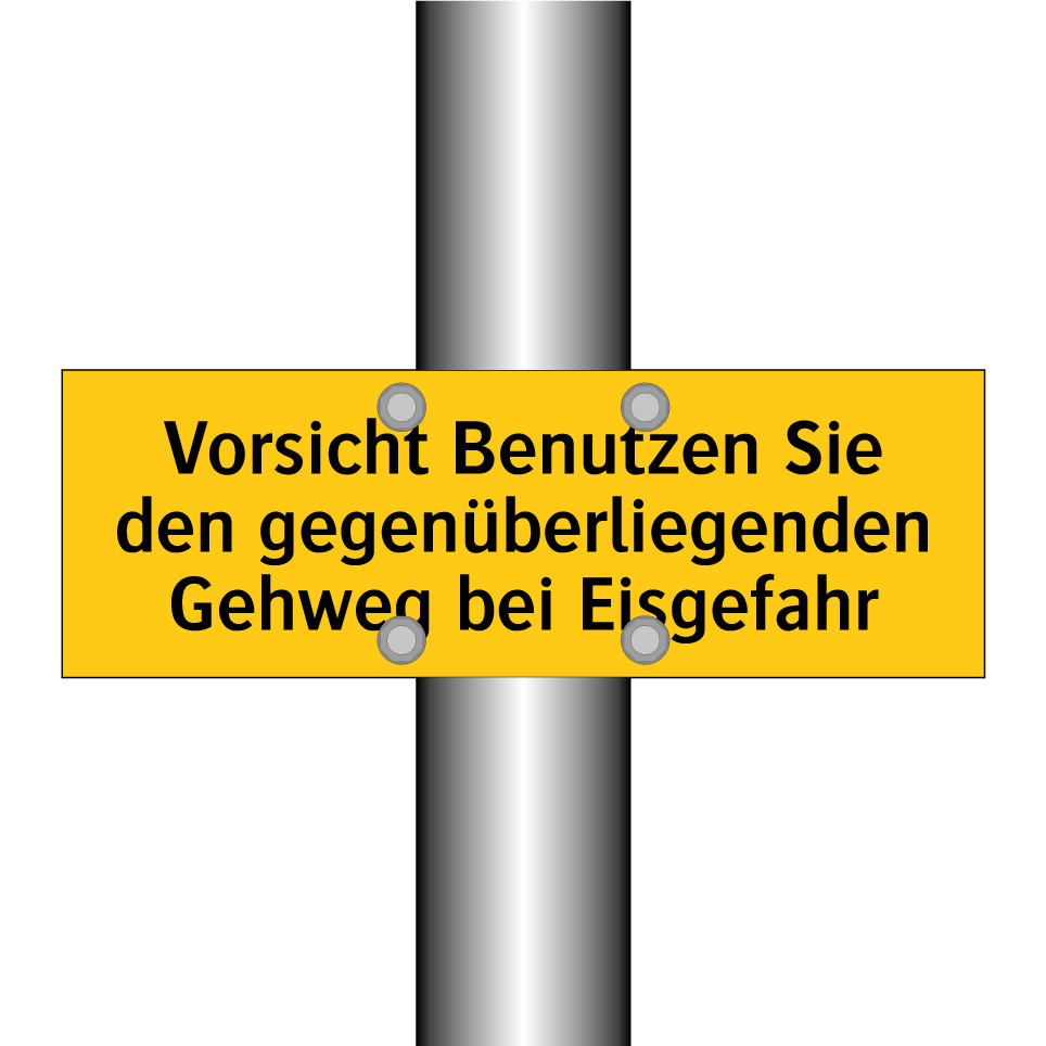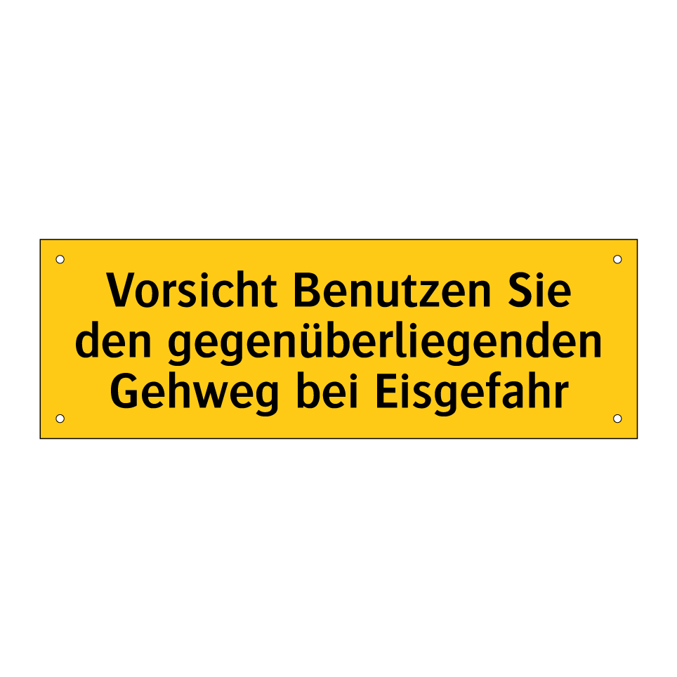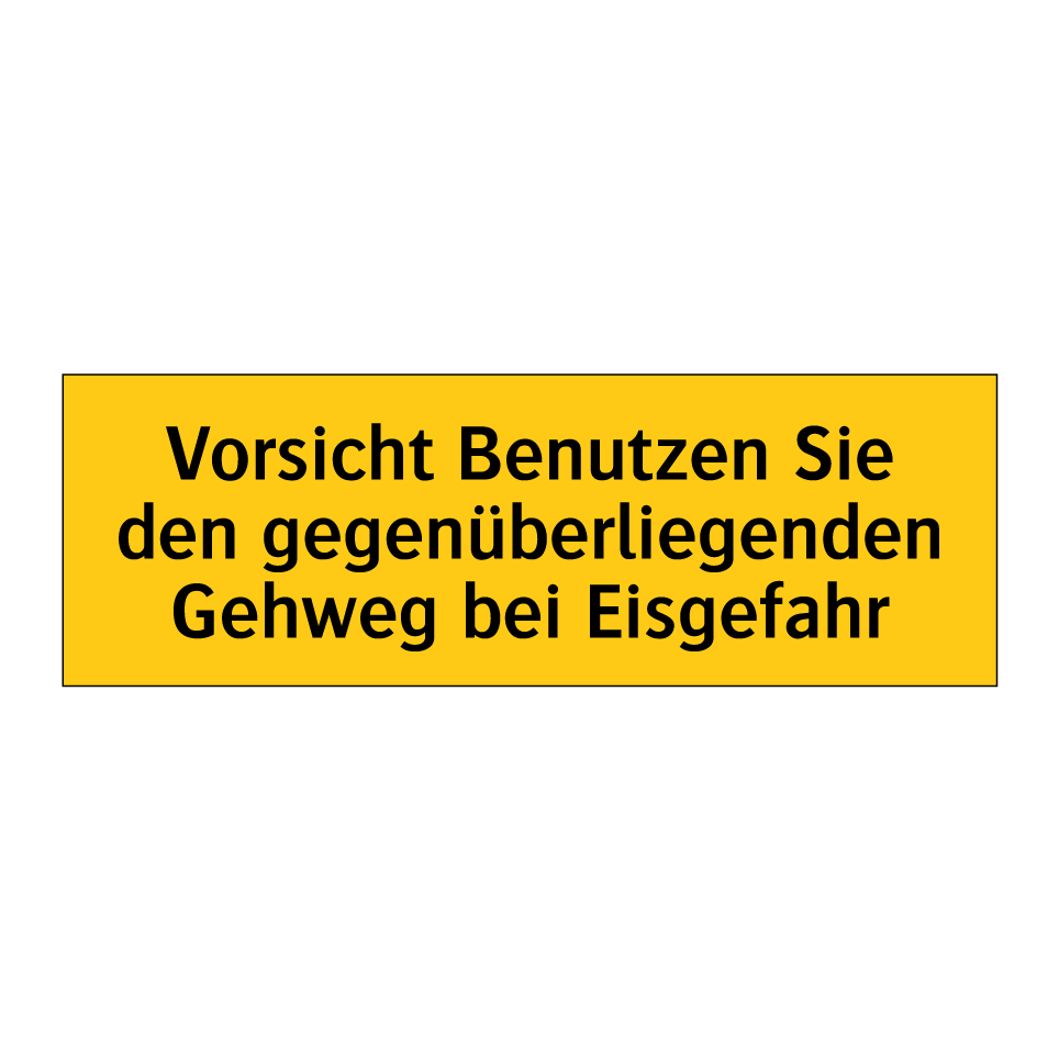 Warnschild mit dem Text Vorsicht Benutzen Sie den gegenüberliegenden Gehweg bei Eisgefahr