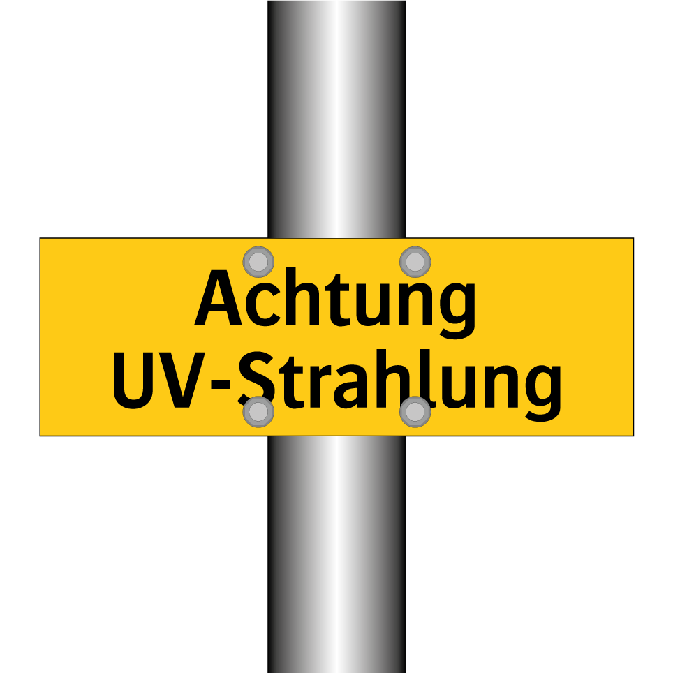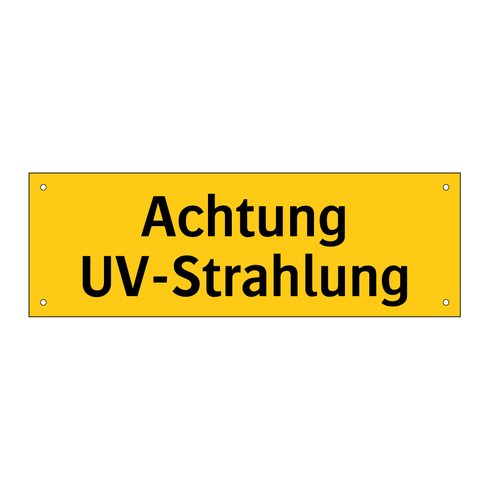 Diese Warnschild mit gelbem Hintergrund und schwarzer Schrift ist ideal, um auf die Gefahren von UV-Strahlung hinzuweisen. Perfekt geeignet für Bereiche, in denen Menschen vor intensiver Sonneneinstrahlung gewarnt werden müssen, wie zum Beispiel in Solarien, Laboren oder Produktionsstätten, in denen UV-Licht verwendet wird. Die deutliche Beschriftung sorgt dafür, dass die Botschaft klar und unmissverständlich vermittelt wird. Platzieren Sie dieses Warnschild an gut sichtbaren Stellen, um die Sicherheit zu erhöhen und das Bewusstsein für die potenziellen Risiken von ultravioletter Strahlung zu schärfen. Ein unverzichtbares Element für jeden, der die Sicherheit in UV-exponierten Bereichen gewährleisten möchte.
