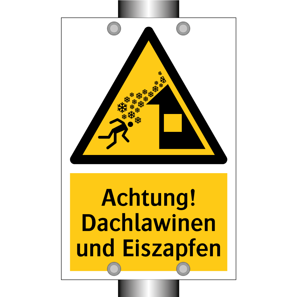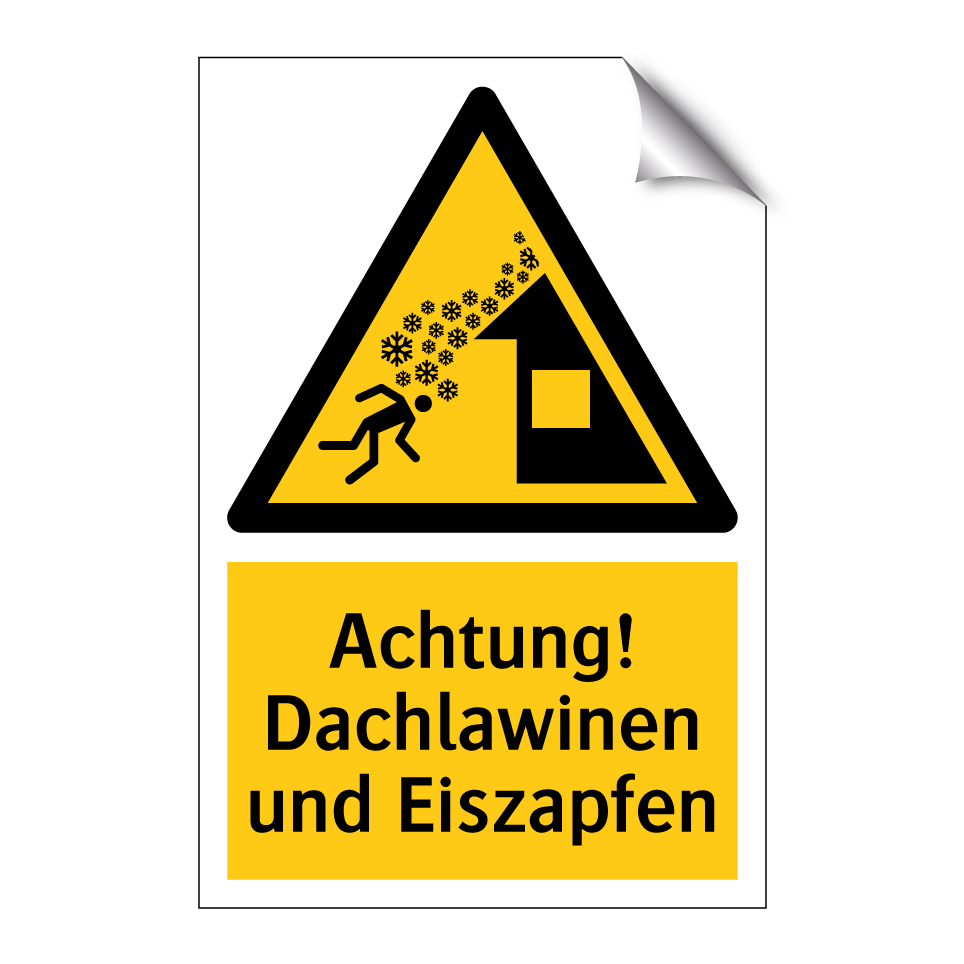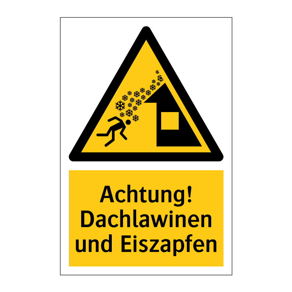 Warnschild mit dem Text Achtung! Dachlawinen und Eiszapfen