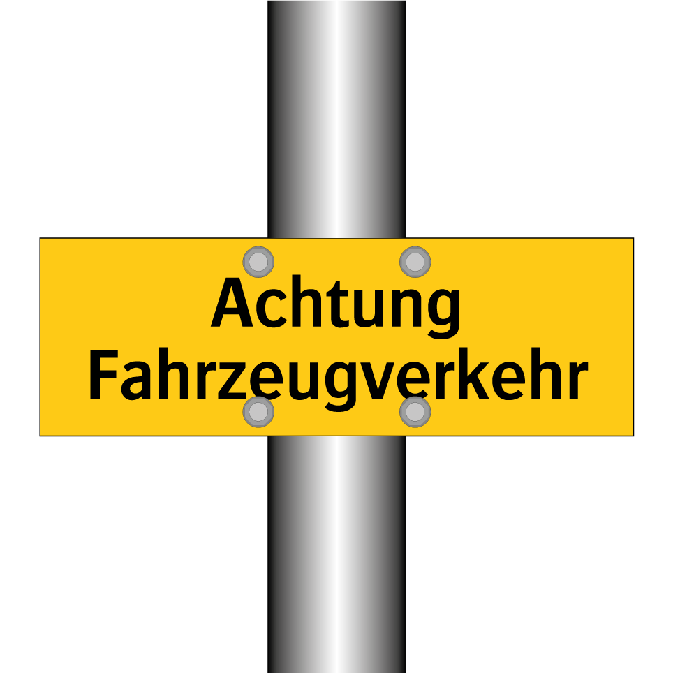 Warnschild mit dem Text Achtung Fahrzeugverkehr