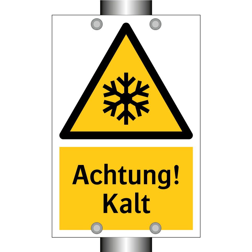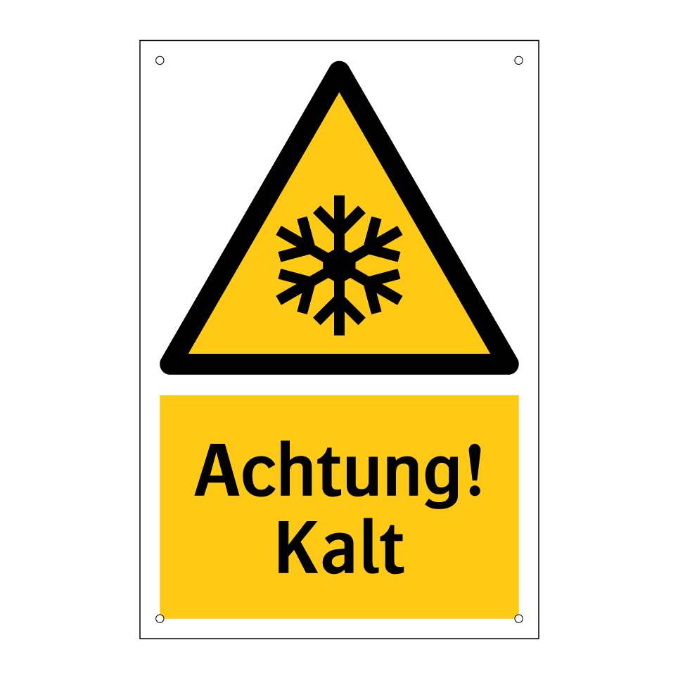 Diese auffällige Warnschild mit gelbem Hintergrund und schwarzer Schrift ist ideal, um auf potenzielle Gefahren durch niedrige Temperaturen hinzuweisen. Perfekt geeignet für den Einsatz in Lagerhallen, Kühlräumen oder Produktionsstätten, wo kalte Bedingungen herrschen. Die klare Symbolik und der prägnante Text machen es einfach, die Botschaft schnell zu erfassen. Platzieren Sie das Warnschild an gut sichtbaren Stellen, um Mitarbeiter und Besucher effektiv zu informieren und Unfälle zu vermeiden. Ob in der Industrie oder im Einzelhandel, diese Warnschilder sind unverzichtbar für die Sicherheit in Bereichen mit Kältegefahr.