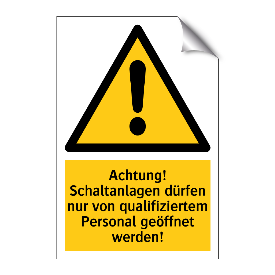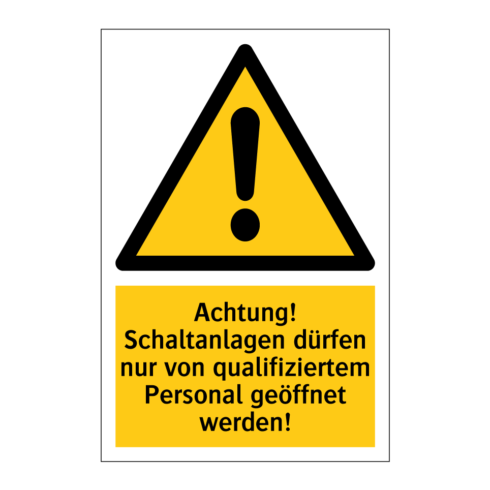 Warnschild mit dem Text Achtung! Schaltanlagen dürfen nur von qualifiziertem Personal geöffnet werden!
