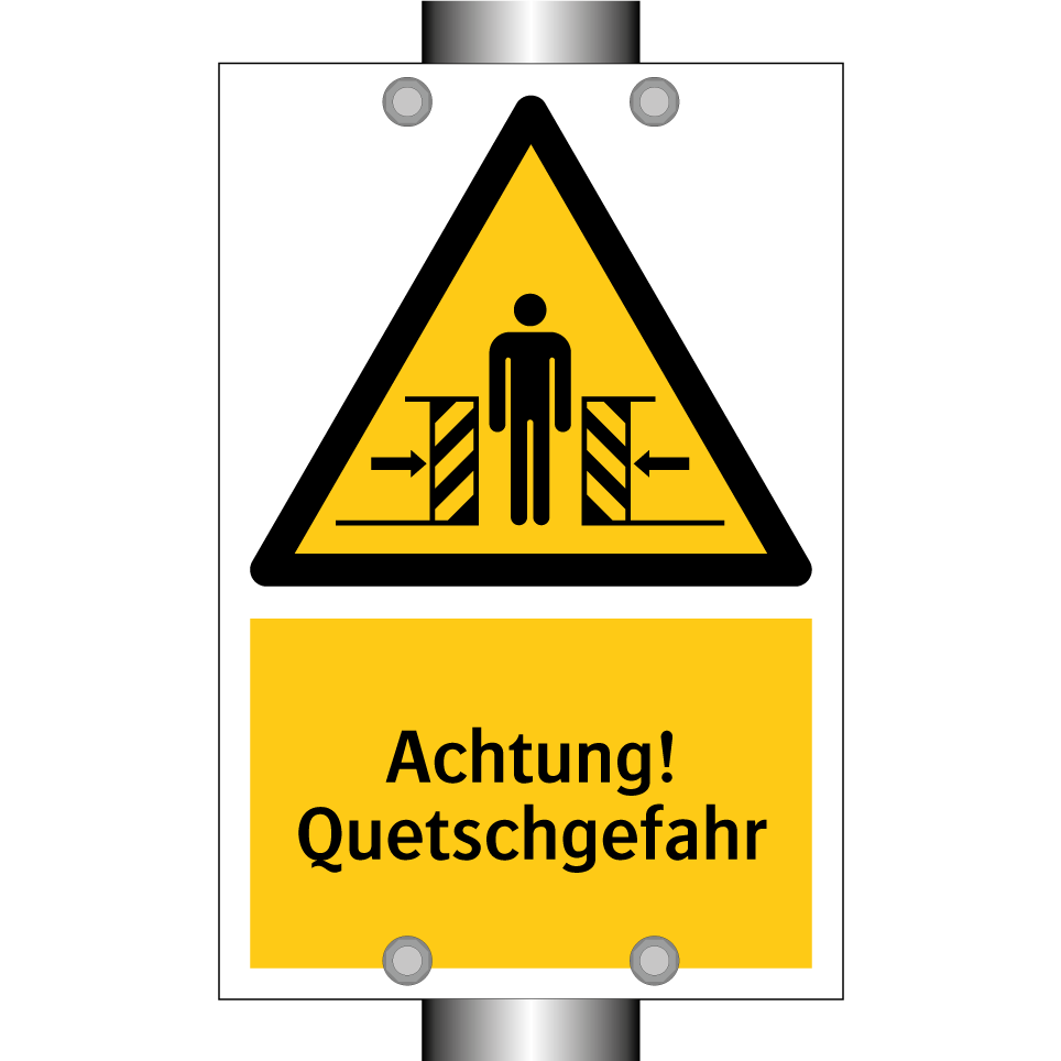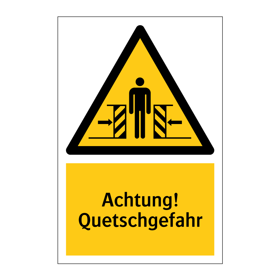 Warnschild mit dem Text Achtung! Quetschgefahr