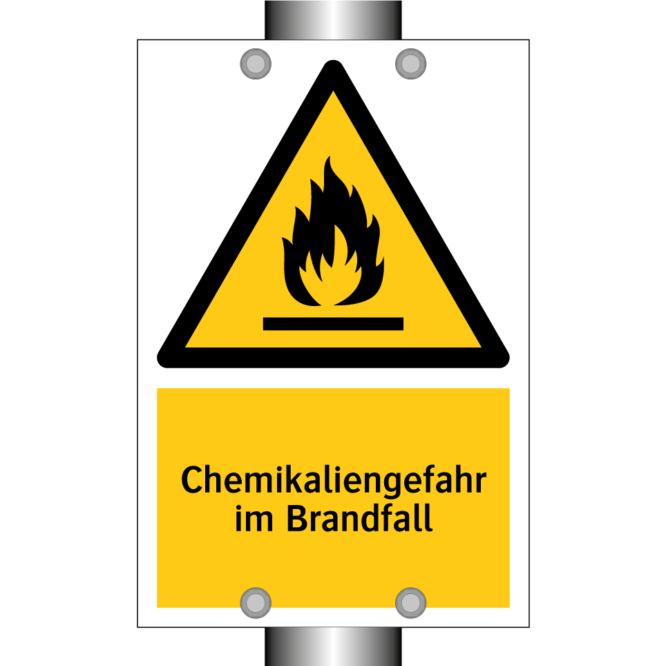 Warnschild mit dem Text Chemikaliengefahr im Brandfall