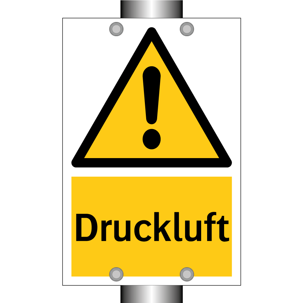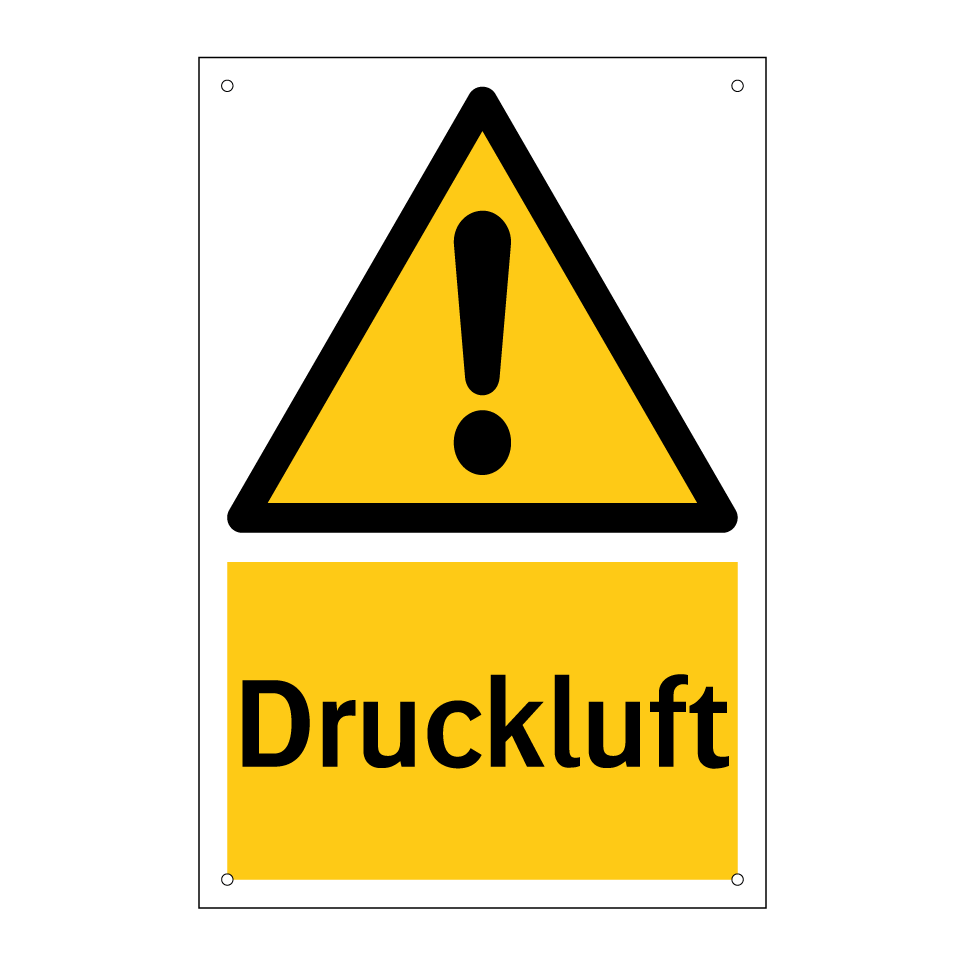 Diese auffällige Warnschild mit gelbem Hintergrund und schwarzer Schrift ist ideal, um auf die Anwesenheit von Druckluft hinzuweisen. Sie eignet sich hervorragend für den Einsatz in industriellen Umgebungen, Werkstätten oder Produktionsanlagen, wo Druckluftsysteme verwendet werden. Platzieren Sie die Warnschilder an gut sichtbaren Stellen, um die Sicherheit der Mitarbeiter zu gewährleisten und Unfälle zu vermeiden. Diese Sicherheitskennzeichnung ist besonders wichtig in Bereichen, in denen unerfahrene Personen oder Besucher auf die Gefahren von Druckluft aufmerksam gemacht werden müssen. Durch die klare Symbolik und die prägnante Botschaft wird die Aufmerksamkeit effektiv auf potenzielle Gefahren gelenkt.